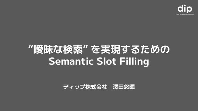 “曖昧な検索” を実現するための Semantic Slot Filling ディップ株式会社 澤田悠暉 1