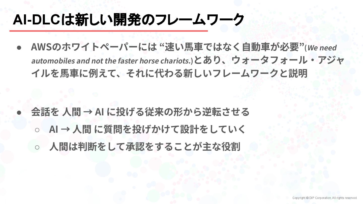 14. Copyright © DIP Corporation, All rights reserved. AI-DLCは新しい開発のフレームワーク • AWSのホワイトペーパーには