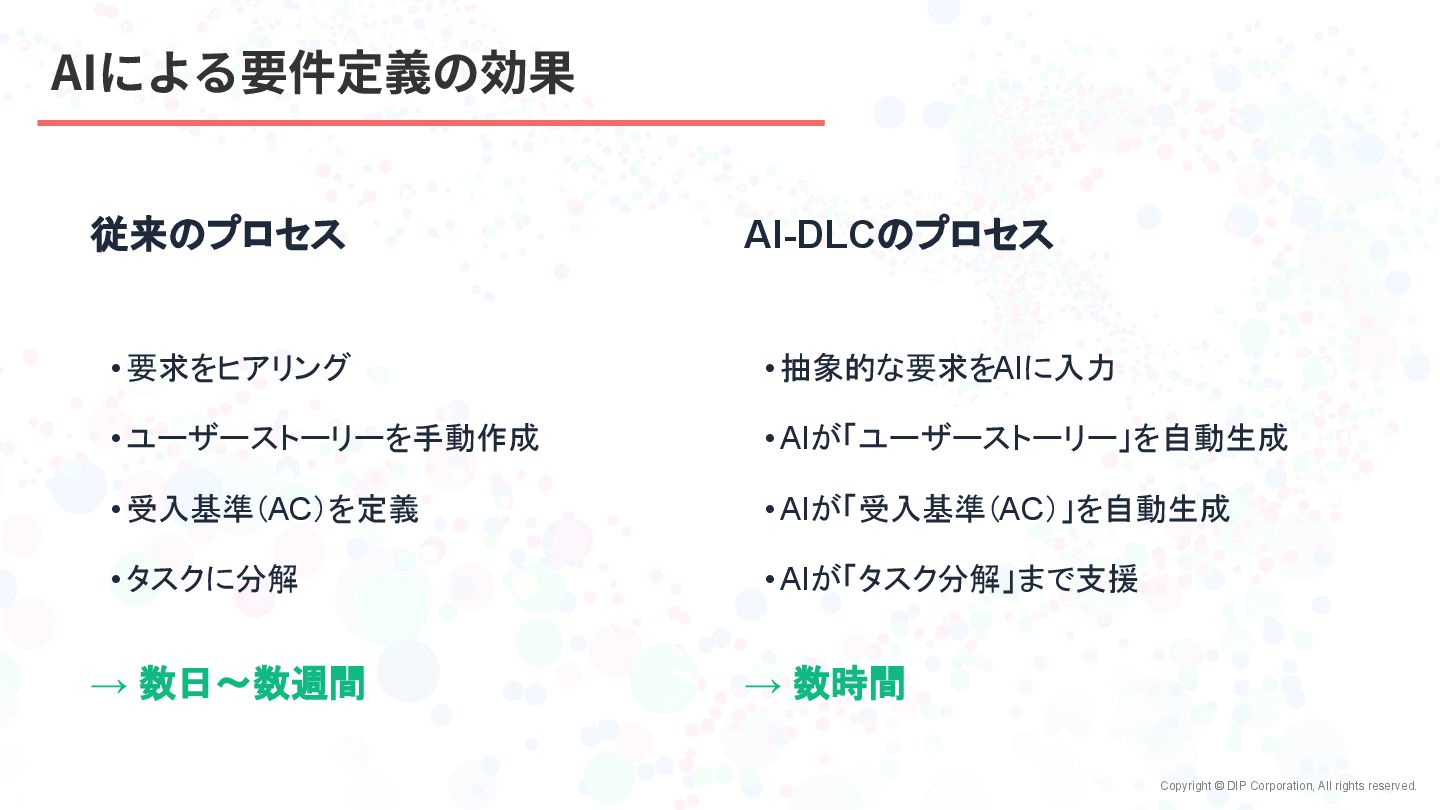 16. Copyright © DIP Corporation, All rights reserved. AIによる要件定義の効果 従来のプロセス •要求をヒアリング