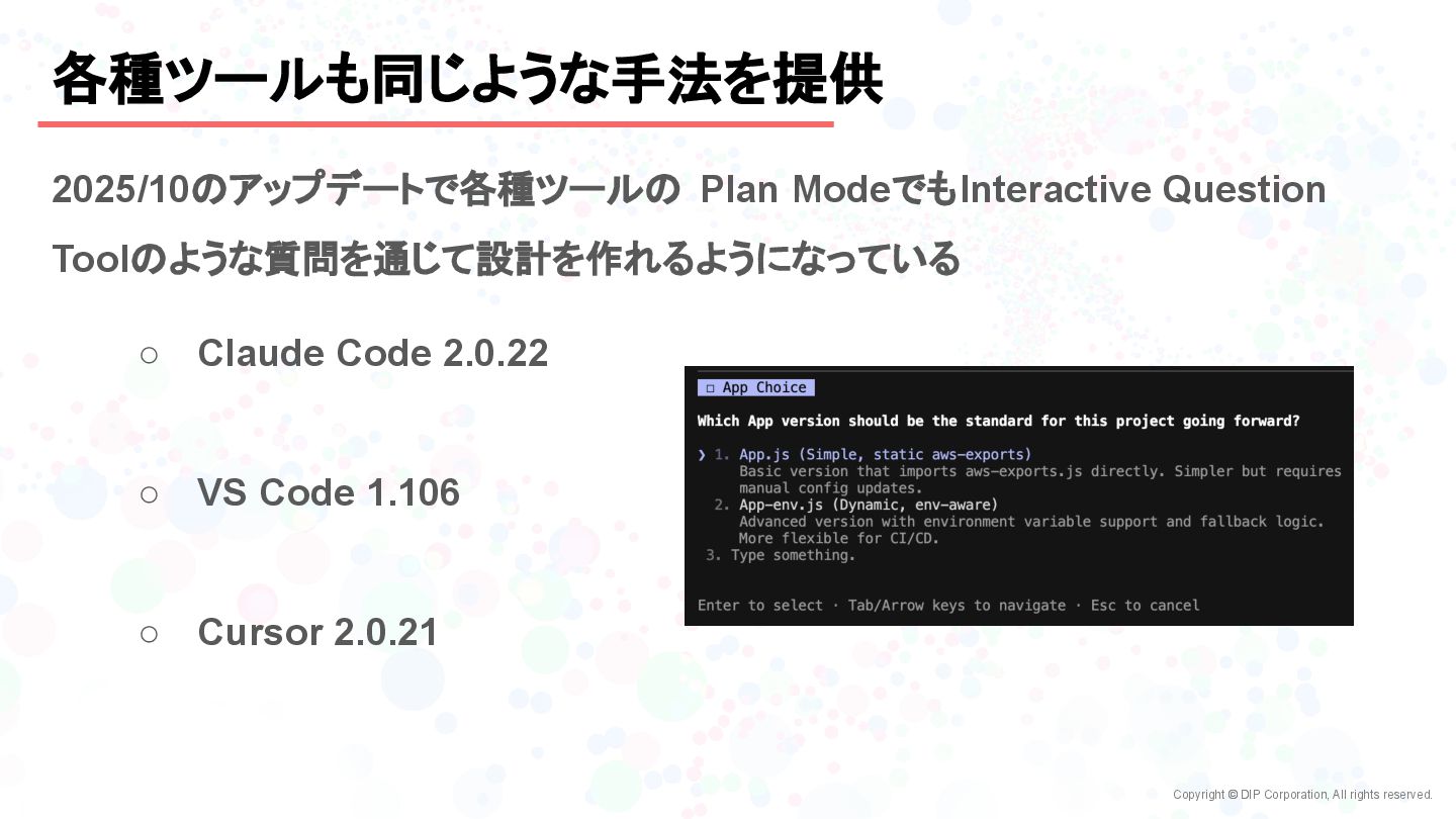 17. Copyright © DIP Corporation, All rights reserved. 各種ツールも同じような手法を提供 2025/10のアップデートで各種ツールの Plan