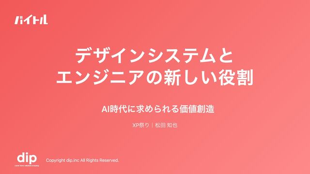 デザインシステムと エンジニアの新しい役割 AI時代に求められる価値創造 XP祭り|松田 知也 Copyright dip.inc All Rights Reserved.