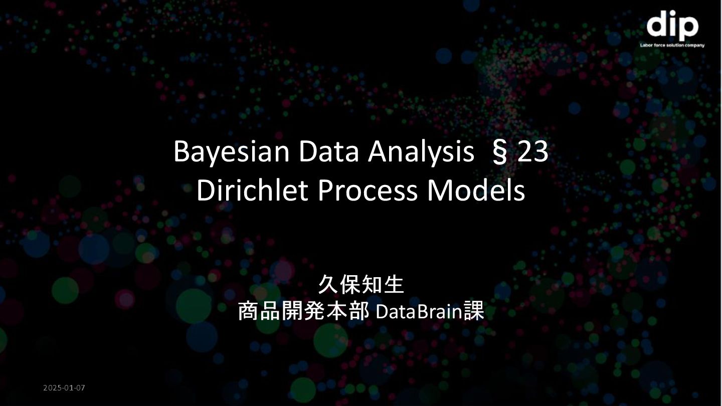 Bayesian Data Analysis §23 Dirichlet Process Models 久保知生 商品開発本部 DataBrain課