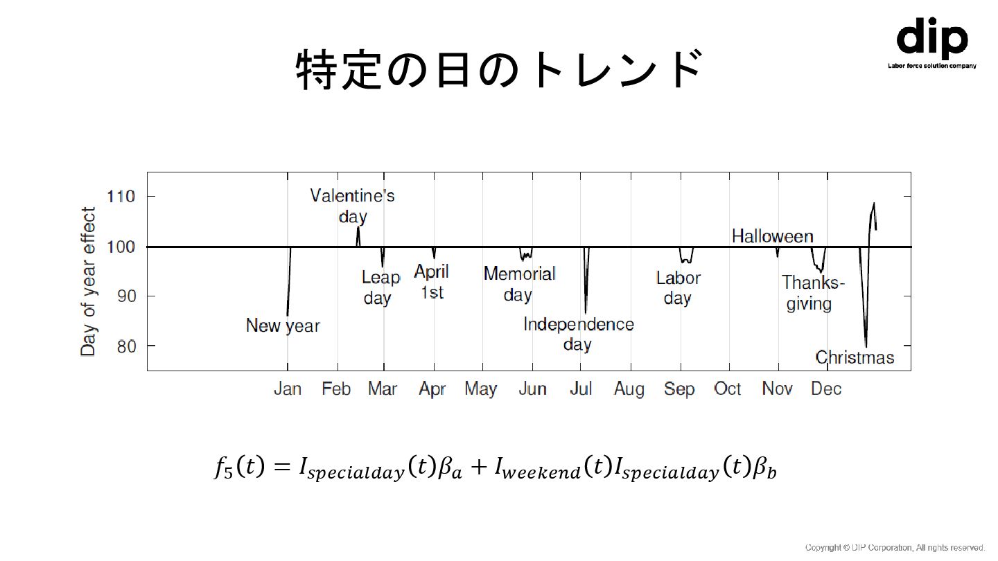 特定の日のトレンド 𝑓5 𝑡 = 𝐼𝑠𝑝𝑒𝑐𝑖𝑎𝑙𝑑𝑎𝑦 𝑡 𝛽𝑎 + 𝐼𝑤𝑒𝑒𝑘𝑒𝑛𝑑 𝑡