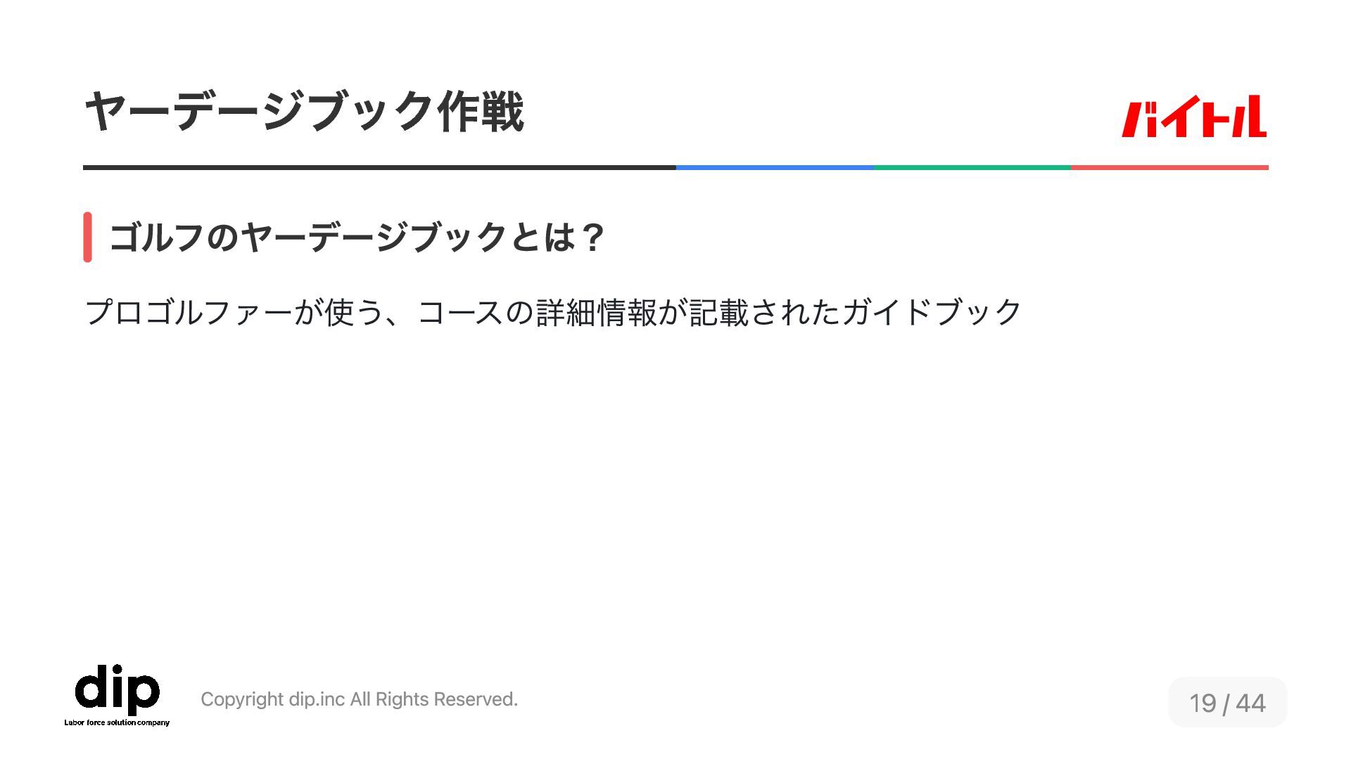 プロゴルファーが使う、コースの詳細情報が記載されたガイドブック ヤーデージブック作戦 ゴルフのヤーデージブックとは? Copyright dip.inc All Rights Reserved. 19 /