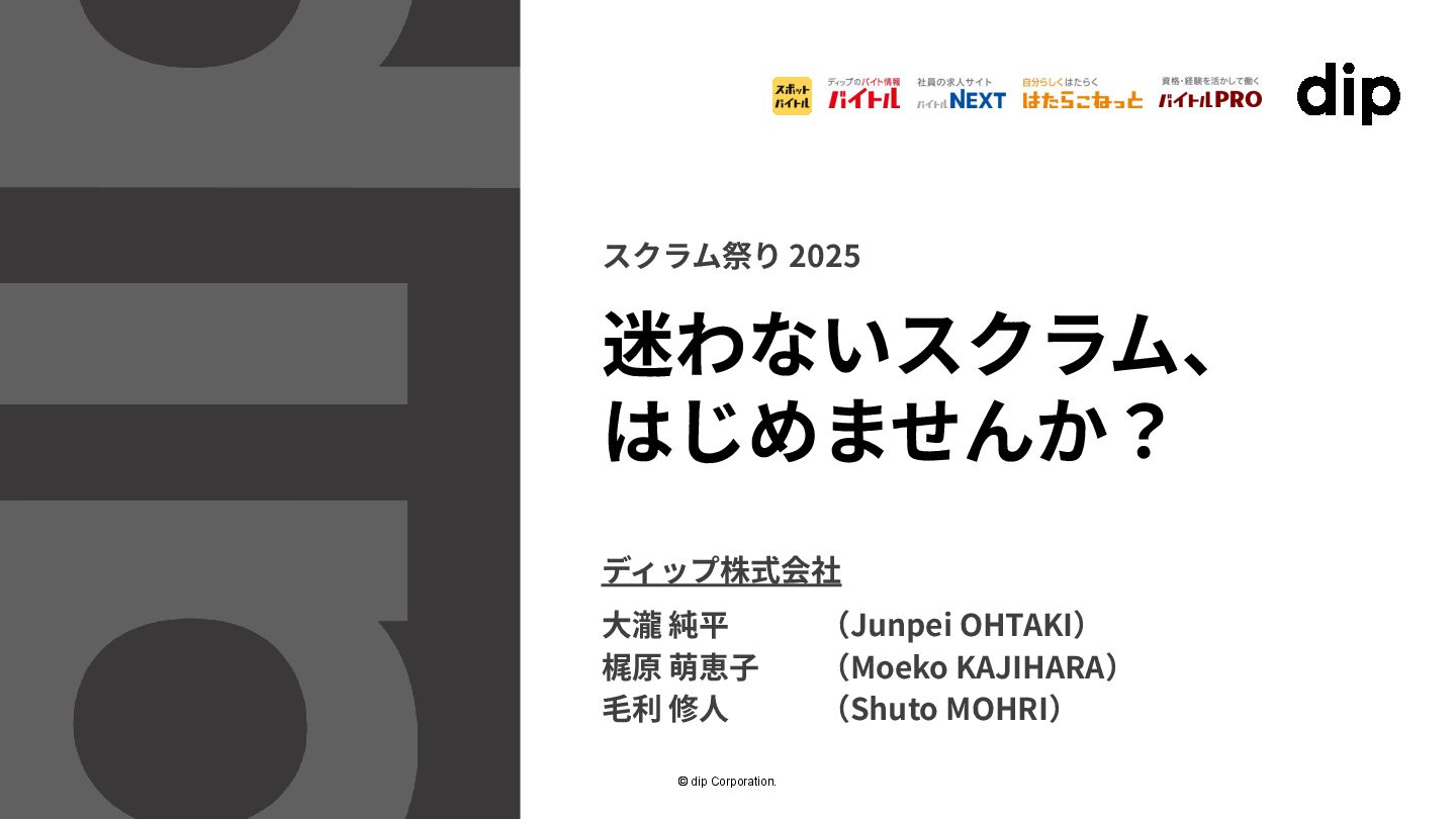 © dip Corporation. 迷わないスクラム、 はじめませんか? スクラム祭り 2025 ディップ株式会社 ⼤瀧 純平