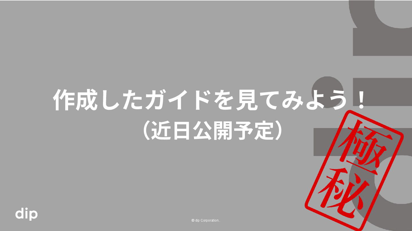 © dip Corporation.. 作成したガイドを⾒てみよう! (近⽇公開予定)