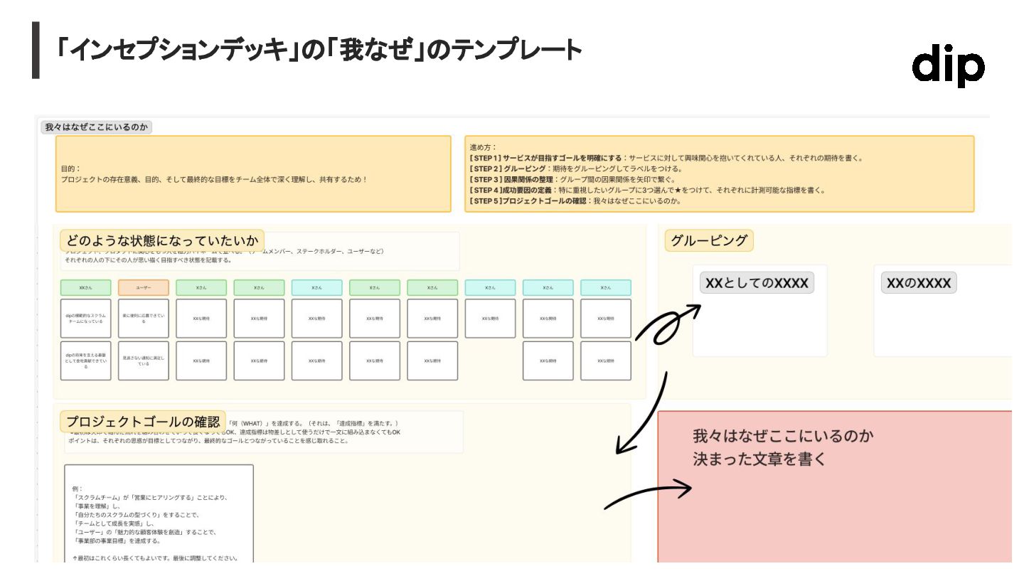 © dip Corporation. 「インセプションデッキ」の「我なぜ」のテンプレート