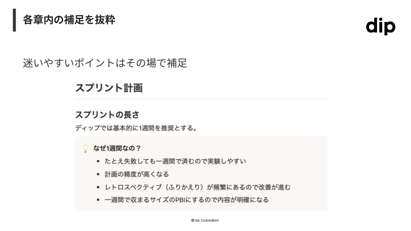 © dip Corporation. 各章内の補⾜を抜粋 迷いやすいポイントはその場で補⾜