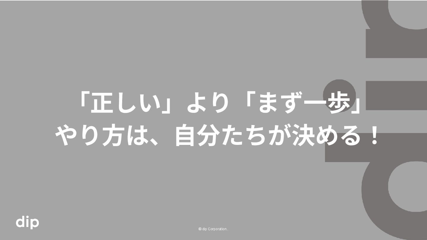 © dip Corporation.. 「正しい」より「まず⼀歩」 やり⽅は、⾃分たちが決める!