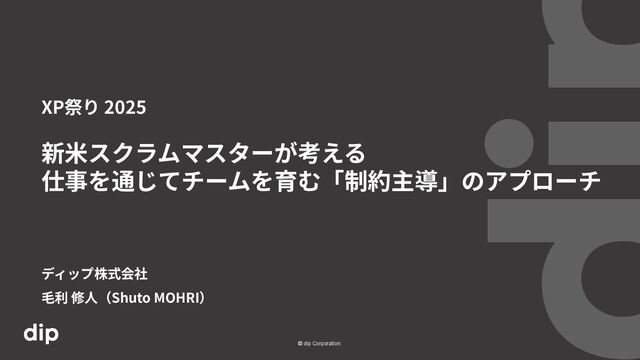 © dip Corporation. 新⽶スクラムマスターが考える 仕事を通じてチームを育む「制約主導」のアプローチ XP祭り 2025 ディップ株式会社 ⽑利 修⼈(Shuto