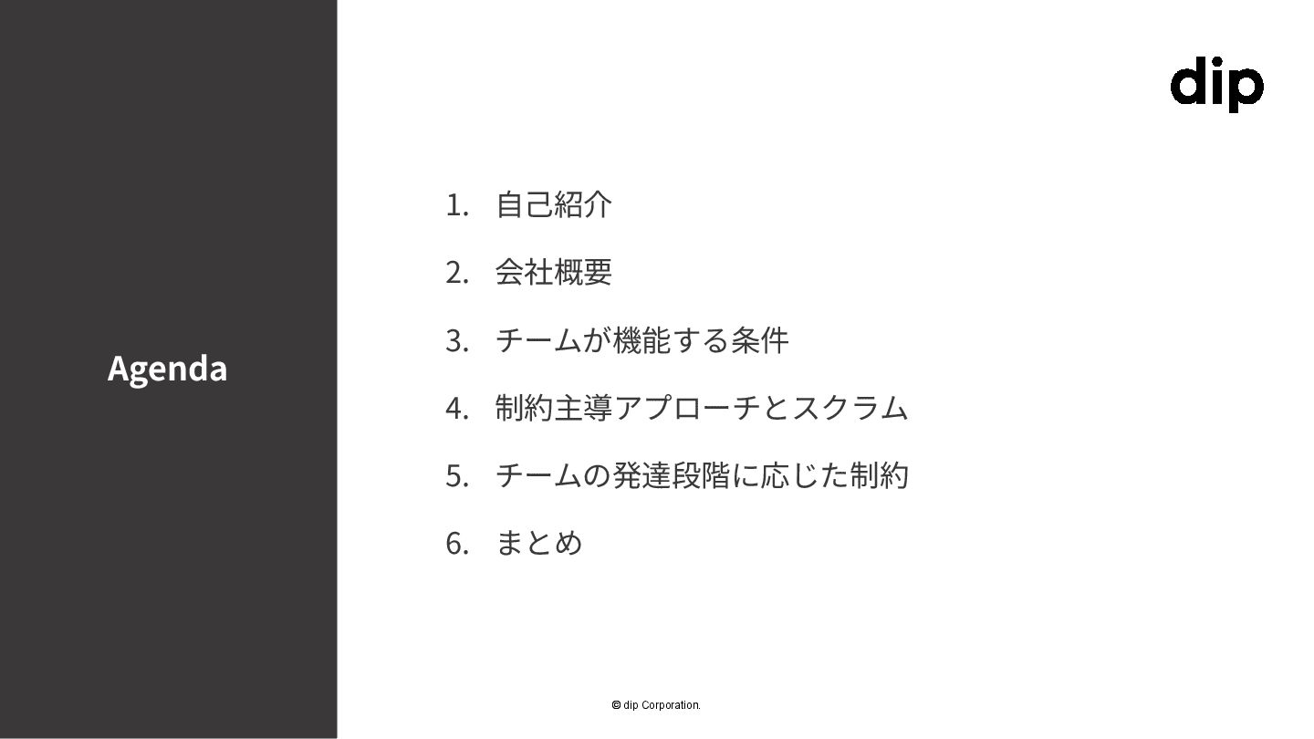 © dip Corporation. Agenda 1. ⾃⼰紹介 2. 会社概要 3. チームが機能する条件