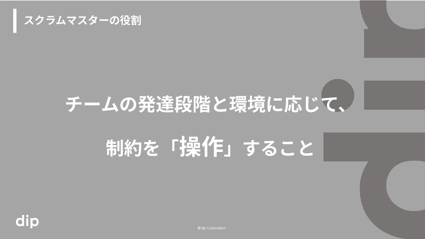 © dip Corporation.. チームの発達段階と環境に応じて、 制約を「操作」すること スクラムマスターの役割