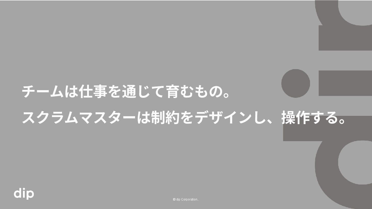 © dip Corporation.. チームは仕事を通じて育むもの。 スクラムマスターは制約をデザインし、操作する。