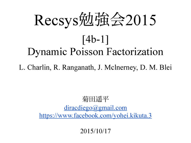 21822 0.0062 0.186 PF-all [6] 0.032 22402 0.0056 0.182 PF-last [6] 0.023 25616 0.0040 0.168 Table 3: Performance of dPF versus baselines on arXiv. Bold num- bers indicate the top performance for each metric. [ Figure 2: dPF performs well across a large range of variances (2– 50) by MRR in a pilot study of a single timestep of the arXiv data. Computational Complexity Machine Learning & Information Theory Quantum Computing Community Detection Monte Carlo & Simulation Probability & Statistics for Graphs Computational Geometry Information Theory Mathematical Statistics Computability Classes Physics & Society Quantum Information Theory Quantum Logic Quantum Algorithms General Interest CS Graph Theory Information Theory Message Passing Algorithms Condensed Matter & Computing Network Analysis 04/05 10/05 04/06 04/07 04/08 04/09 04/10 04/11 03/12 10/06 10/07 10/08 10/09 10/10 10/11 0.0 0.2 0.4 0.6 0.8 1.0 Figure 3: Evolution of latent factors, corresponding to research ar- eas, as discovered by dPF from the raw click data. We see that network analysis has been a growing area of research in computer science over the past decade. Table Bold dPF d PF-a erenc 3.5 Ther we h to ex can b date arXiv In tors u from mode ϨʔςΟϯάਫ਼্ ࣌ؒใͷॏཁੑΛࣔࠦ ਤදݪจΑΓҾ༻ arXiv-cs-statsʹ͓͚Δ20ݸͷજࡏมͷ࣌ؒൃల ݚڀख़͍ͯͯ͠େมಈͳ͍͕NetworkͳͲ৳ு