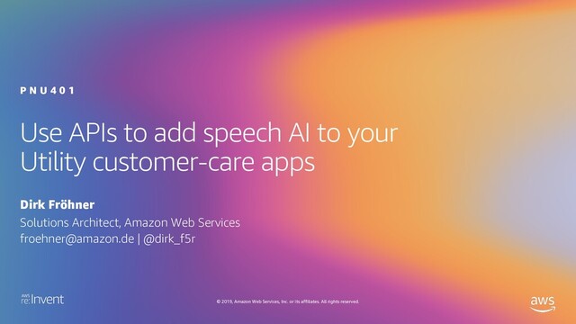 AWS services put AI in the hands of developer. Consequently, you don't need to be a data scientist to join this session. We discuss and then build the architecture of a serverless AI workload relevant for Energy/Utility retailers (or any industry with customer contact centers): The automated analysis of call recordings using AWS automatic speech recognition (ASR) and natural language processing (NLP) services. You leave this session with a solid understanding of how you can use AWS AI services to easily add intelligence to all of your applications. Please bring your laptop and access to an AWS account. Please bring your laptop.