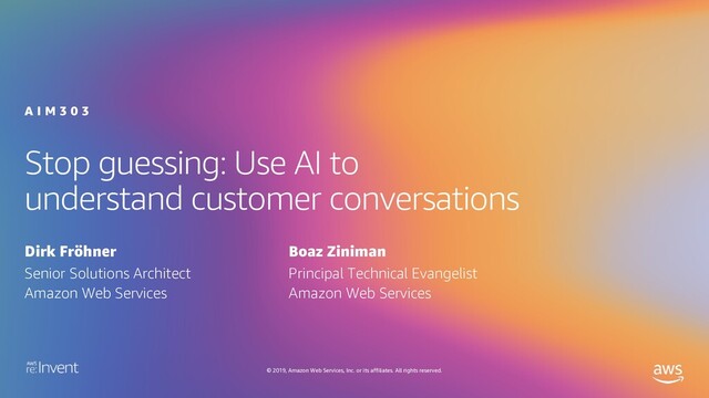 You don't need to be a data scientist to build an AI application. In this workshop, we show you how to use AWS AI services to build a serverless application that you can use to understand your customer interactions. Analyze call-center recordings with the help of automatic speech recognition, translation, and natural language processing (NLP). Get hands-on by producing your own call recordings using Amazon Connect. In the last step of this workshop, set up a processing pipeline to automate transcription and NLP analysis, and run analytics and visualizations on the results.