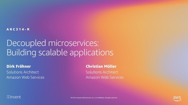 Often, when the microservices architecture style is applied, much of the communication between components is done over the network. In order to achieve the promises of microservices, this communication needs to happen in a loosely coupled manner. One frequently used option is to have all services expose an API following the REST architectural style. However, there is another option that provides even looser coupling: asynchronous messaging. In this workshop, you learn how to use AWS messaging services to build decoupled microservices architectures to achieve massive scale.