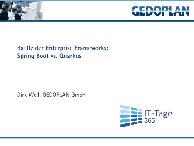concepts, reviews, development GEDOPLAN IT Training Trainings in Berlin, Bielefeld, on-site Enterprise Java since 1999 WildFly, Spring Boot, Quarkus … Consultants, developers, trainers, speakers, authors 3 gedoplan.de Spring Boot vs. Quarkus