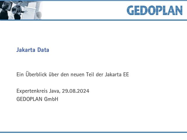 Konzepte, Reviews GEDOPLAN IT Training Java, JEE, Tools u.v.a.m. in Berlin, Bielefeld, on-site JEE seit 1999 Speaker und Autor 2 gedoplan.de Jakarta Data