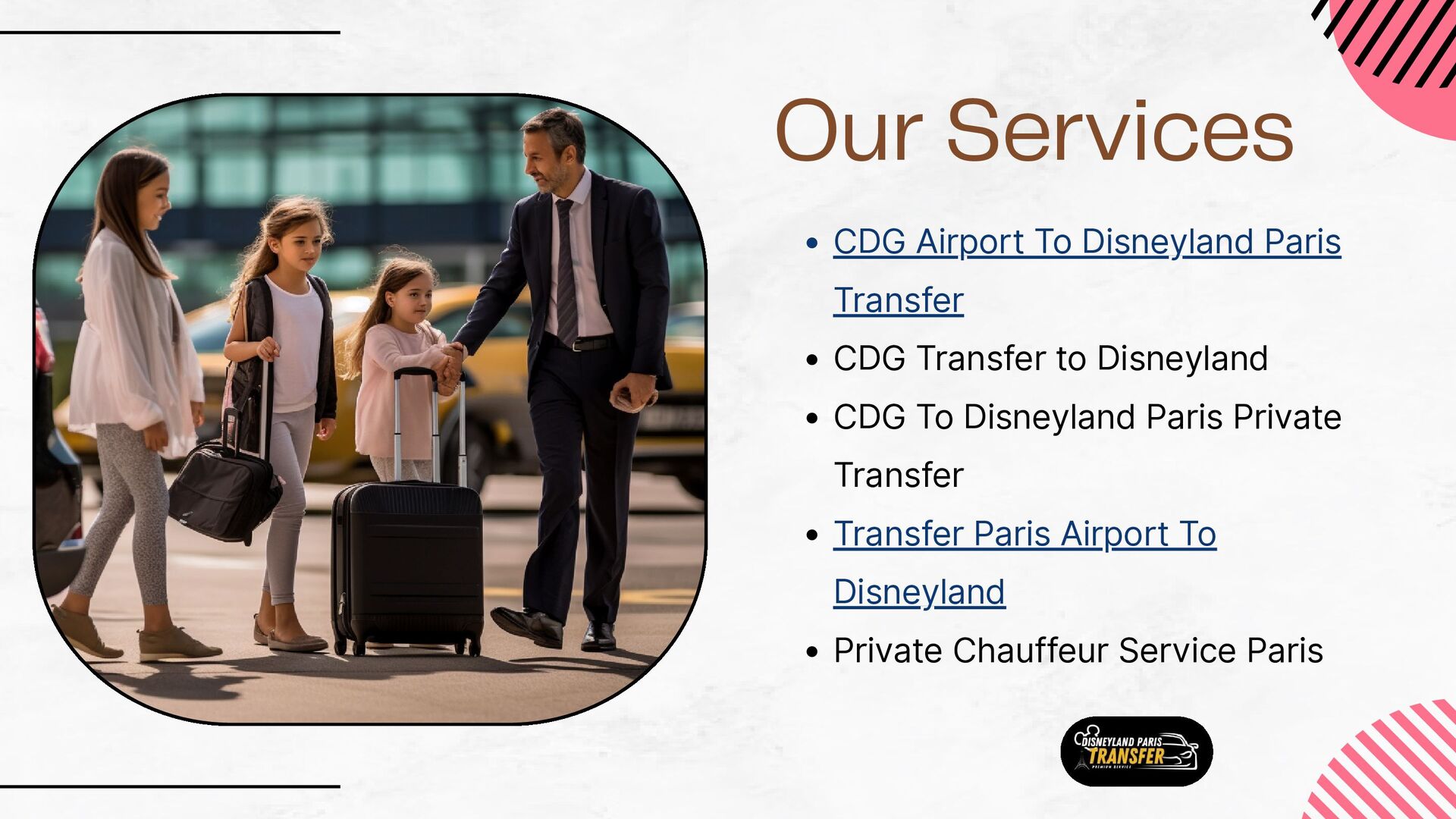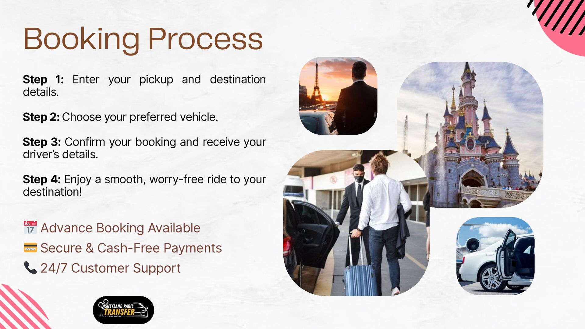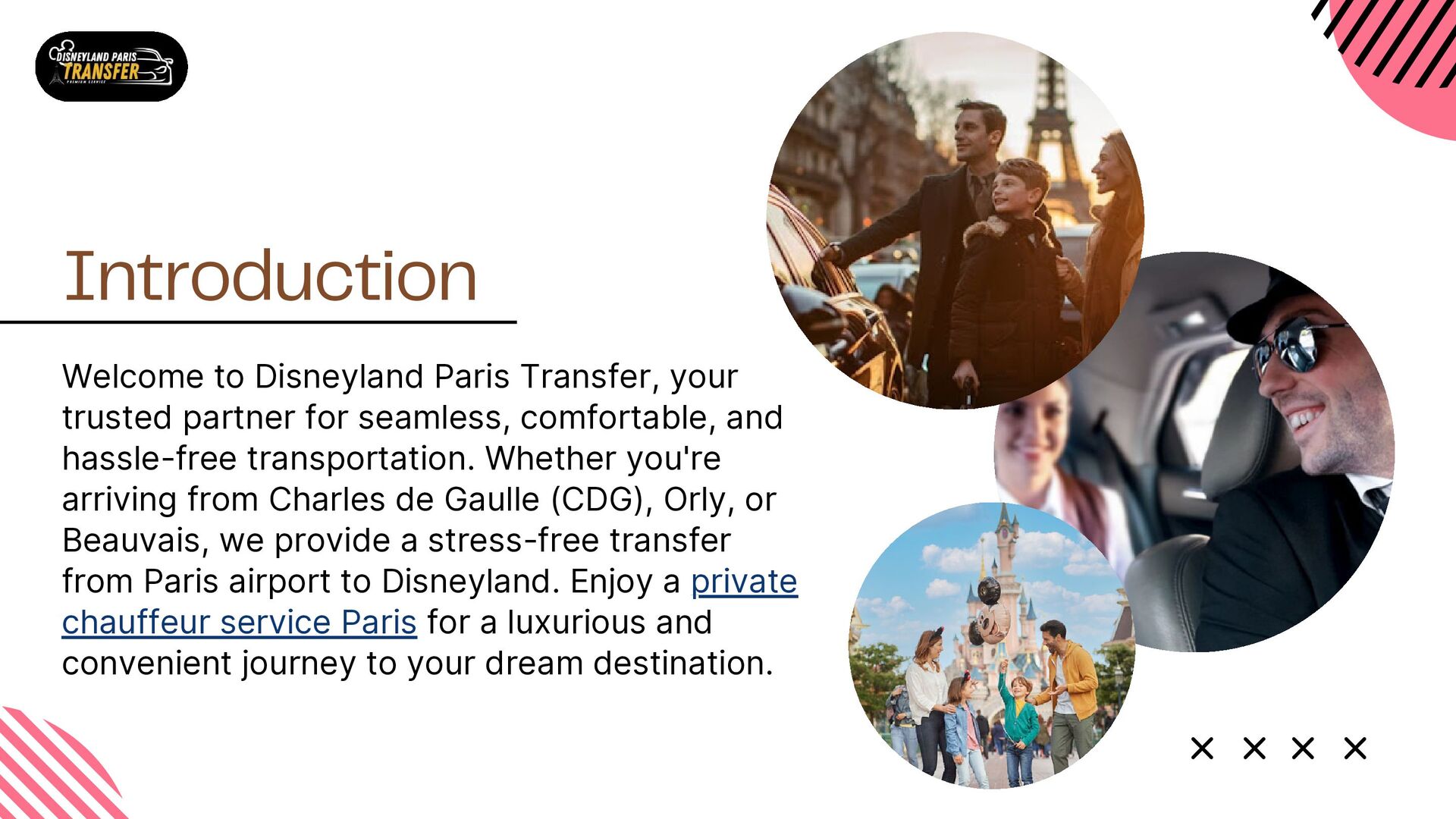 seamless, comfortable, and hassle-free transportation. Whether you're arriving from Charles de Gaulle (CDG), Orly, or Beauvais, we provide a stress-free transfer from Paris airport to Disneyland. Enjoy a private chauffeur service Paris for a luxurious and convenient journey to your dream destination.