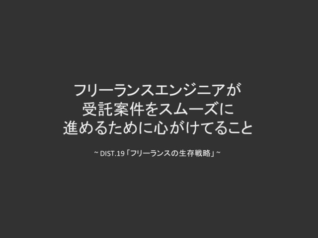 2018年2月2日に行われたDIST.19 「フリーランスの生存戦略」のスライドです。