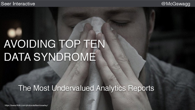 ‹#› Top Ten Data Syndrome: /täp ten ˈdadəˈ sinˌdrōm/ Noun • The inability to look past the ‘top ten’ data pieces in a data set • An illness where only top data is deemed valuable for analysis and all other data is recklessly disregarded • Example: “I demand to see the top ten landing pages, top ten referral sites and top ten locations of my site’s visitors!” https://www.flickr.com/photos/kokopinto/ Seer Interactive @McGswagg