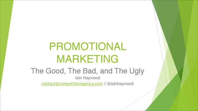 Regs can Vary Significantly by Country (and by territory) u Want to run something in Italy? Then get familiar with the Ministry of Productive Assets and Economic Development, and the Chamber of Commerce, submitting your rules and details of the competition for review, notifying of the start date, and an official must be involved in the picking of a winner. u France has a similar set of requirements where rules must be publicly registered with a notary and have a bailiff involved with the picking of a winner. Entrants can also claim reimbursement of any entry costs (so don’t have a postal or text option!) u In Brazil, you’re not allowed to give away cash. Other countries have restrictions on the amount of cash you can give away, like Taiwan, which has a formula based on the average wage. Mexico has a ceiling amount before the government must get involved. u Many countries don’t allow giveaways or sweepstakes (that is to say, no-skill participation) at all, including Sweden, Ireland and in Quebec, Canada (if you’re running a sweepstake or giveaway in Canada, make sure it’s void in Quebec for example). This can be nominally circumvented by using an “idiot question”, like “what’s the 5th letter of the alphabet?” u Even in the United States, some states like Rhode Island require registration of a contest u Don’t forget international rules relating to data protection. In Italy, all entrant data needs to be conveniently stored on Italian servers, and in the USA, under COPPA (Children's Online Privacy Protection Act) you can’t take or retain any details of anyone under the age of 13, for example.