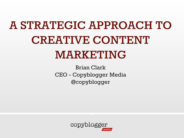 A STRATEGIC APPROACH TO CREATIVE CONTENT MARKETING Brian Clark CEO
