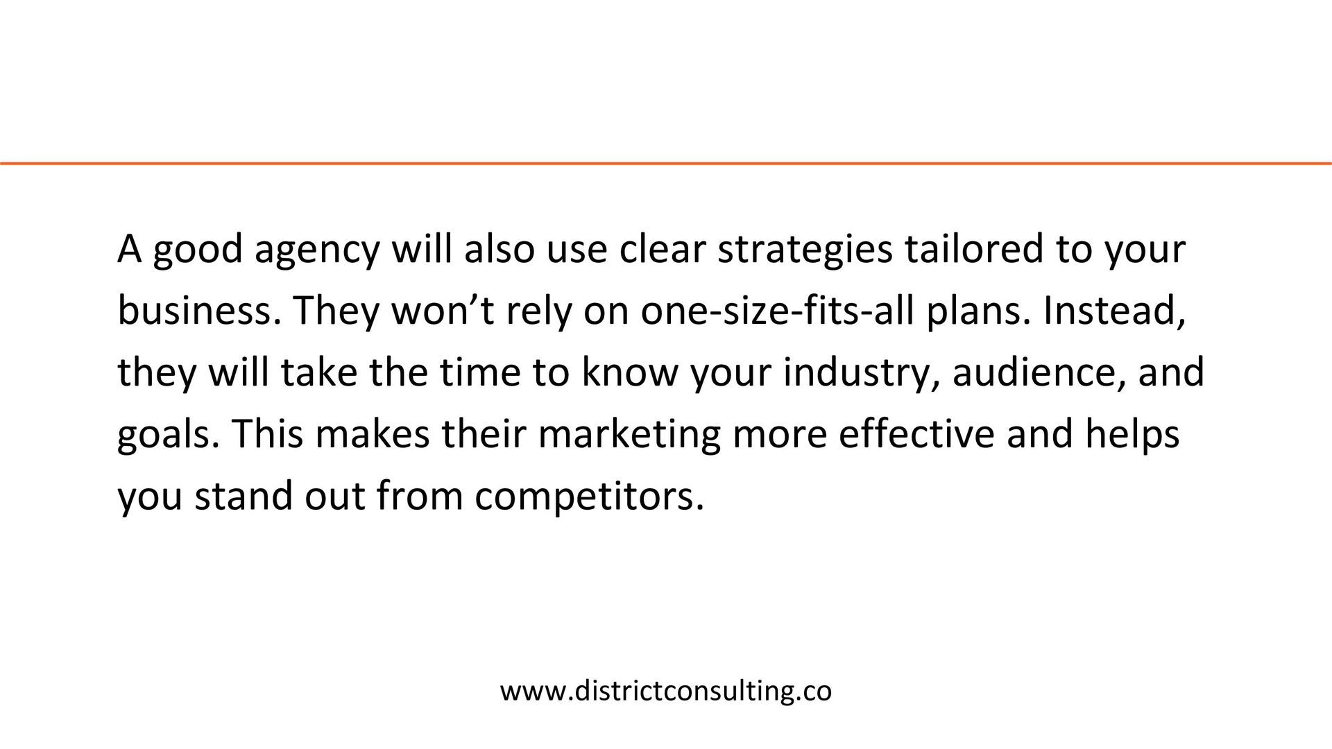 your business. They won’t rely on one-size-fits-all plans. Instead, they will take the time to know your industry, audience, and goals. This makes their marketing more effective and helps you stand out from competitors. www.districtconsulting.co
