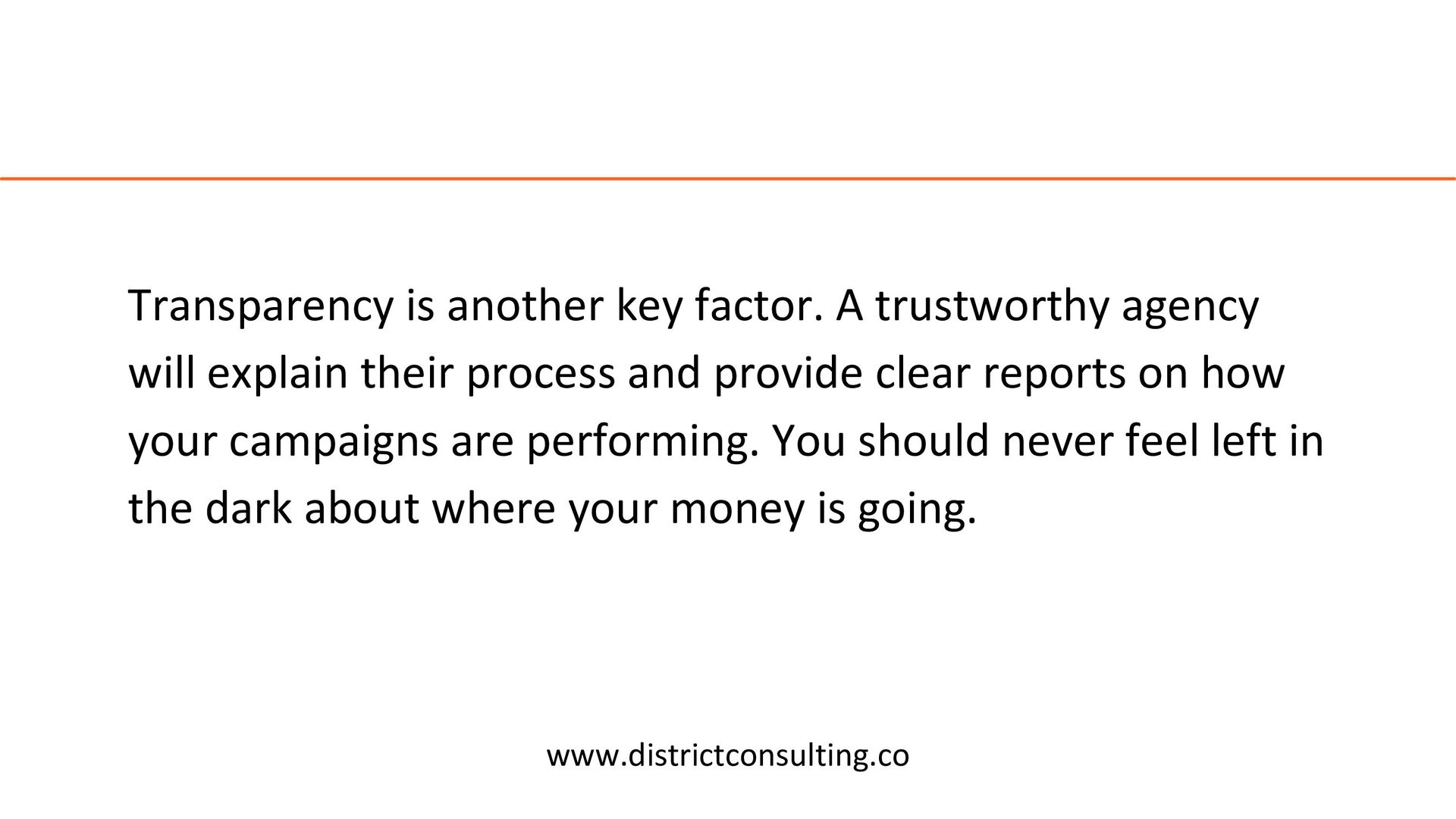 their process and provide clear reports on how your campaigns are performing. You should never feel left in the dark about where your money is going. www.districtconsulting.co