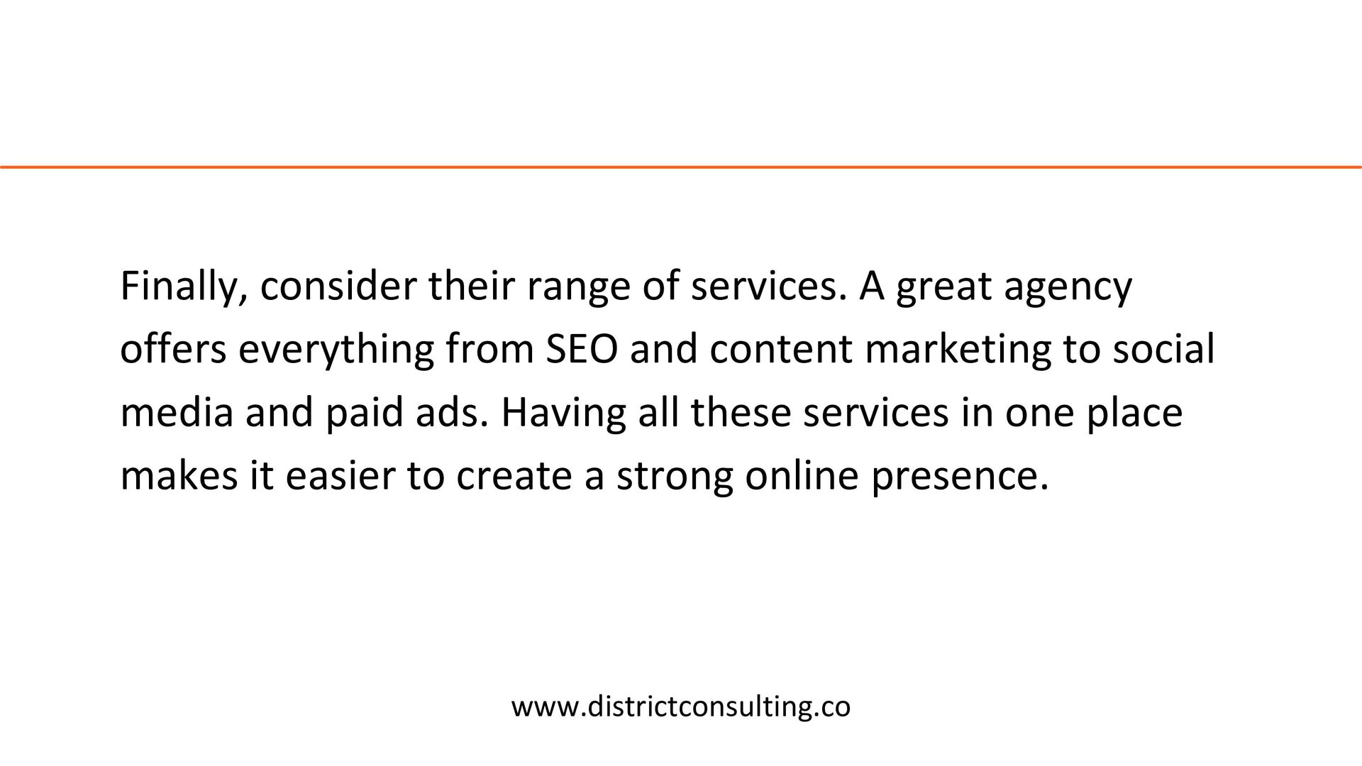 make a big difference in how well your business grows online. The right team will help you reach more customers, improve your brand, and increase sales. But how do you know which agency is the best fit for your needs? www.districtconsulting.co