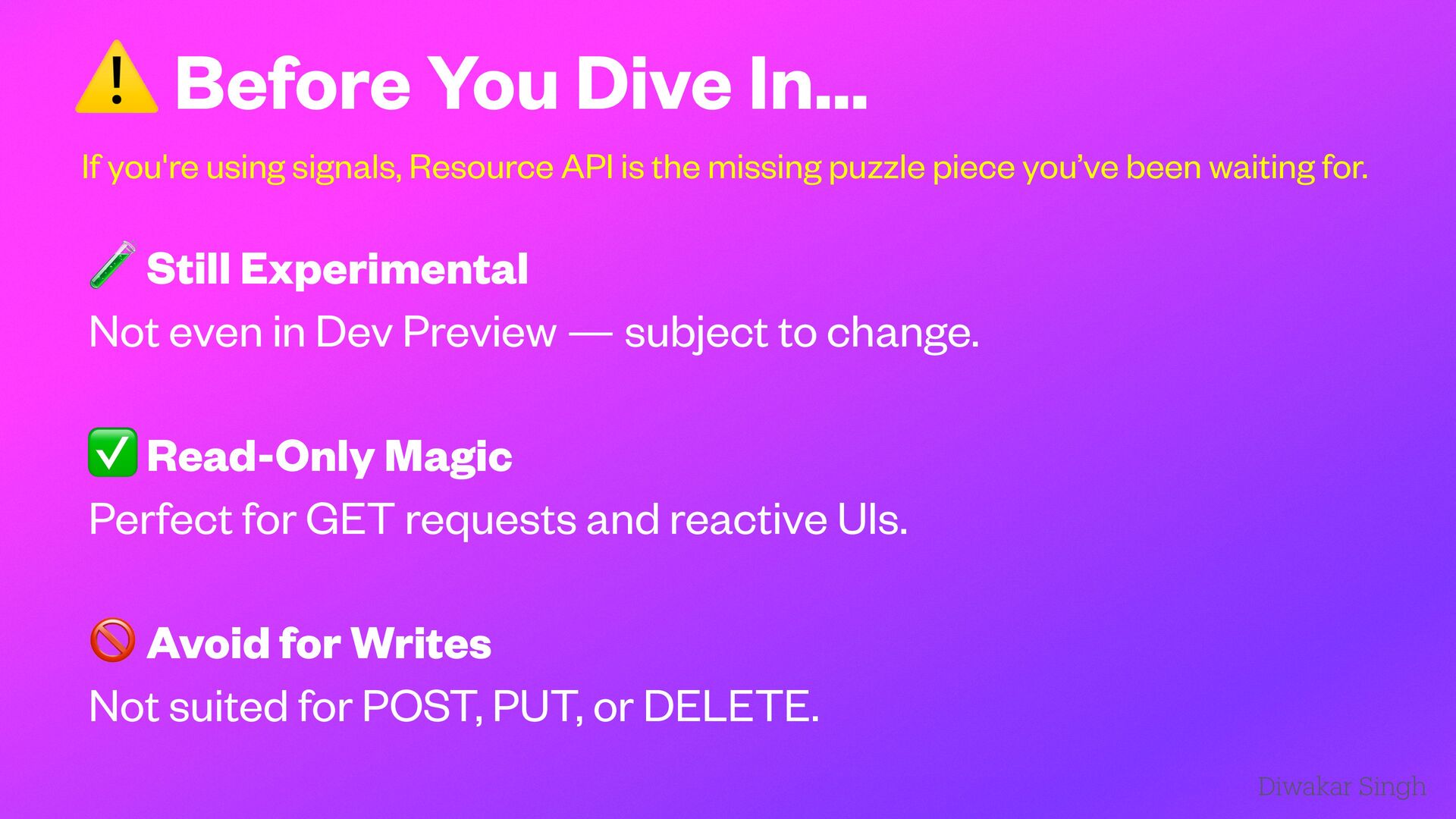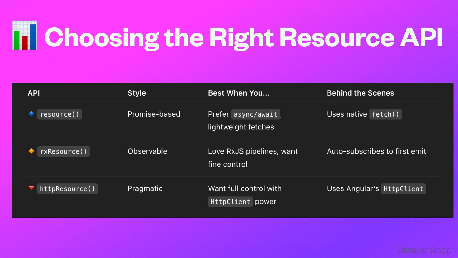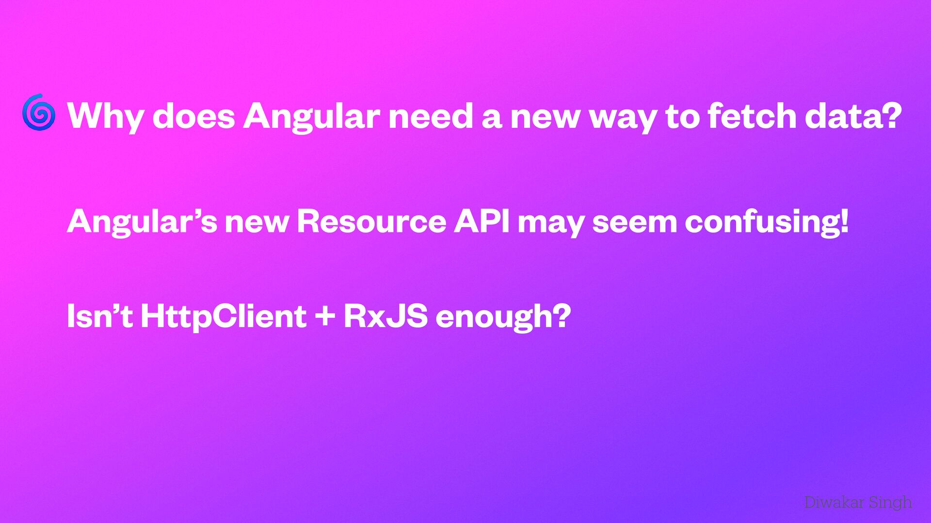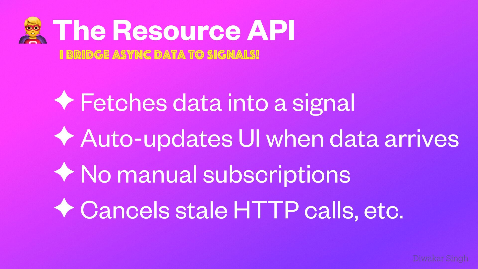 Explore the new experimental Angular Resource API introduced in v19. This talk dives into how the Resource API simplifies data fetching with built-in support for loading and error states, making Angular apps feel more native and reactive. Includes real-world demos comparing traditional HttpClient with resource, RxResource, and HttpResource approaches. Presented at ng Delhi Meetup 2025.
