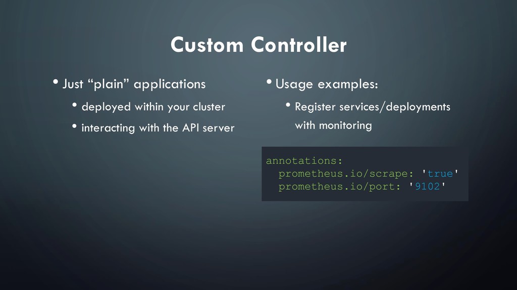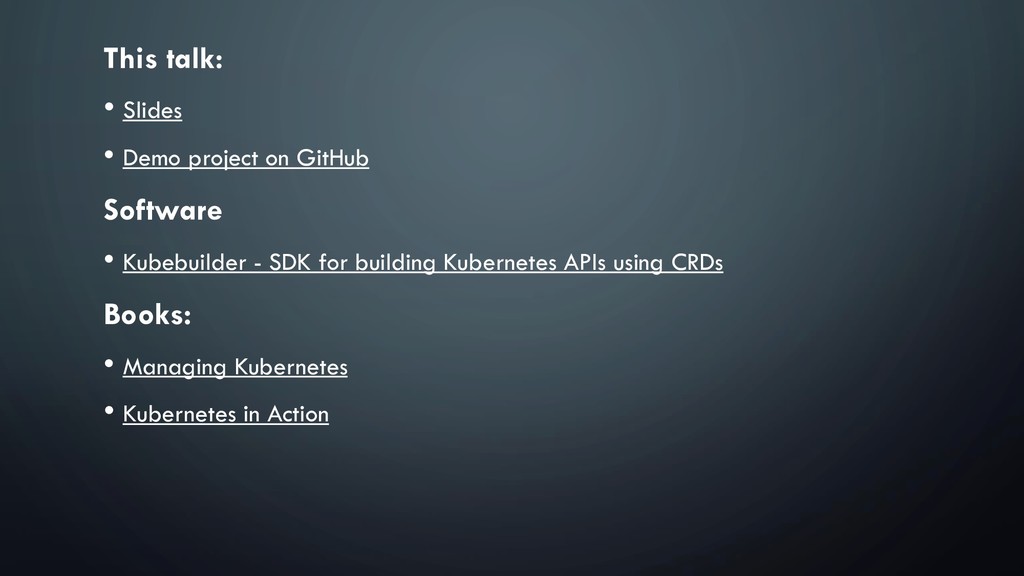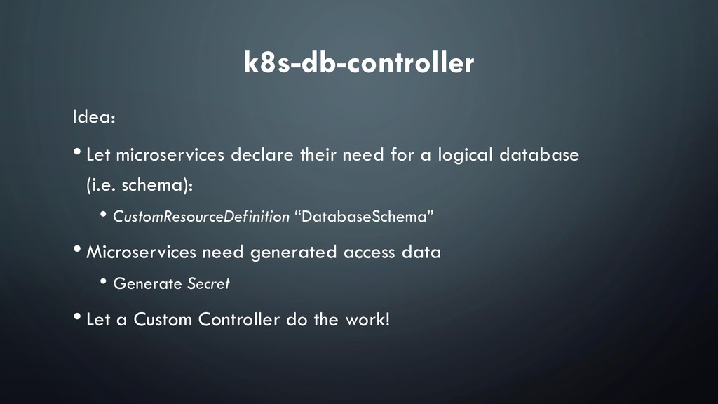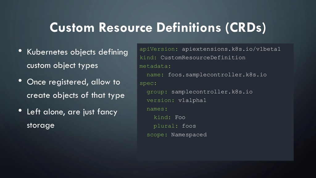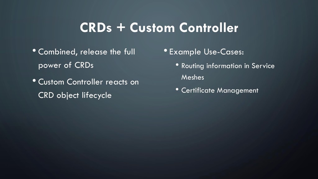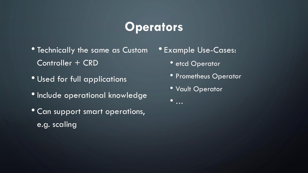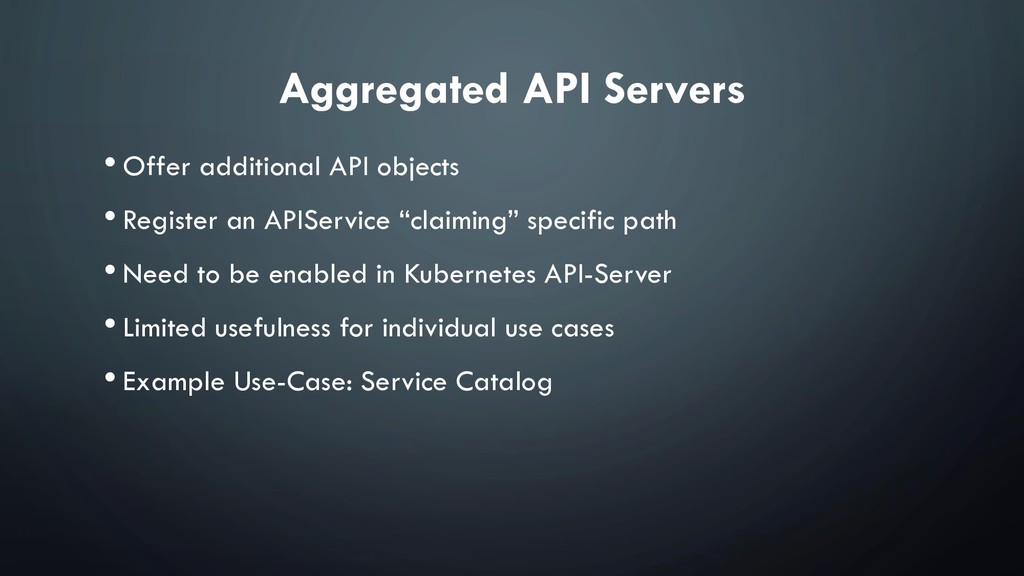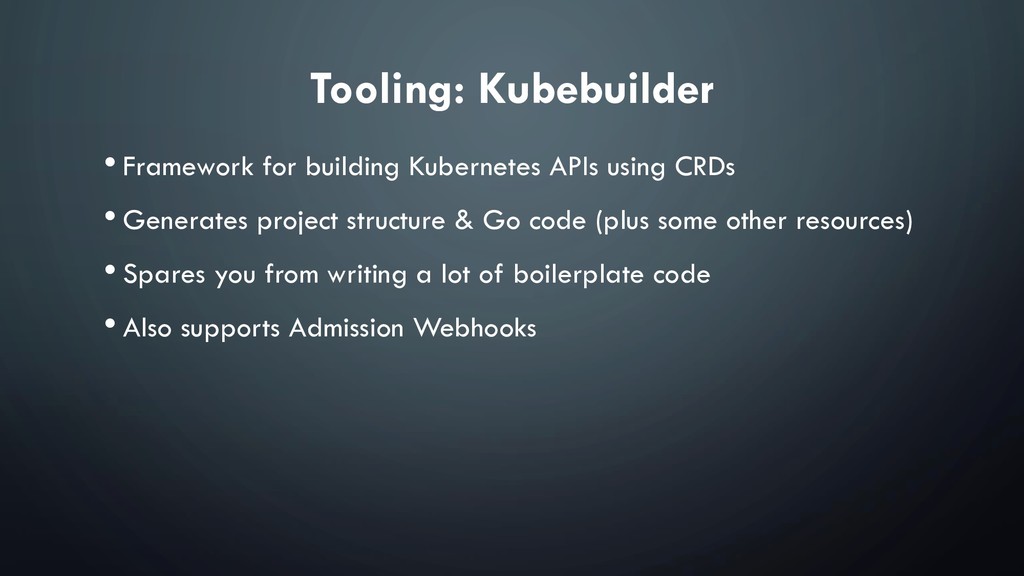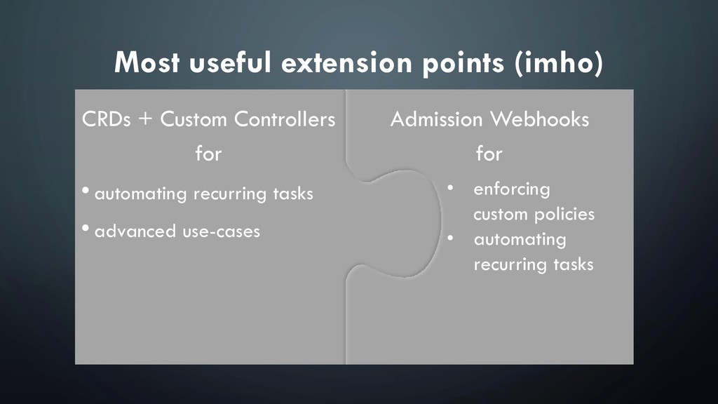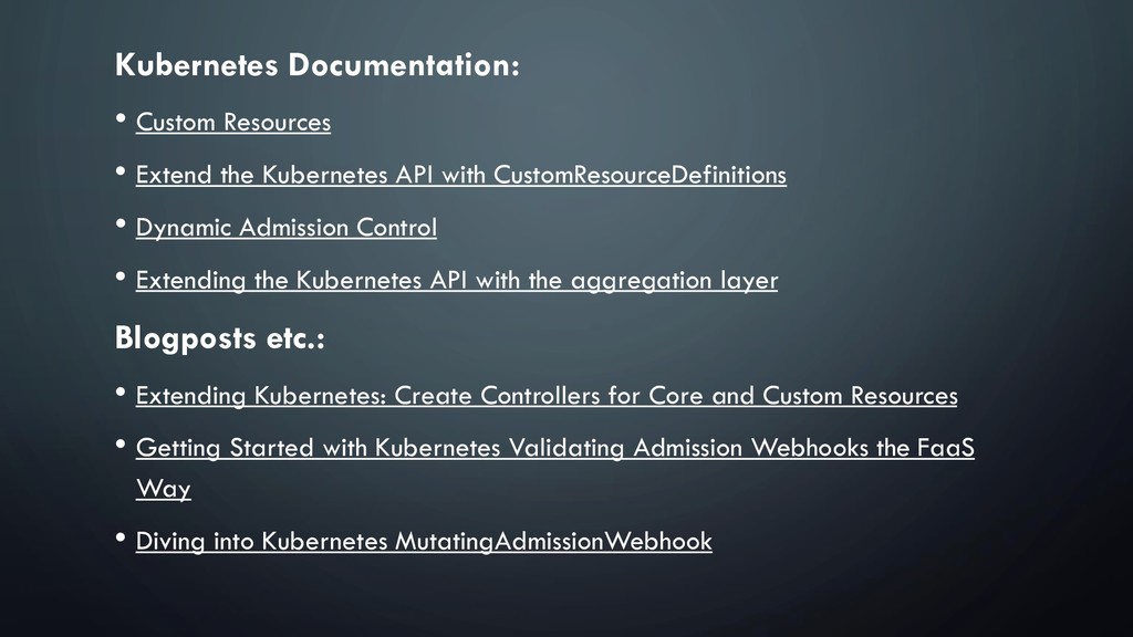 If you have use-cases to extend Kubernetes, what are the means to do so? This Talk explains the existing extension points on a high-level, with reference to a demo project (available on GitHub) showing how to implement custom resource definitions (CRDs) and custom controllers utilizing the Kubebuilder framework.