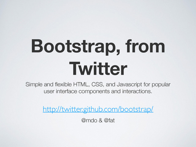 Bootstrap, from Twitter Simple and flexible HTML, CSS, and Javascript