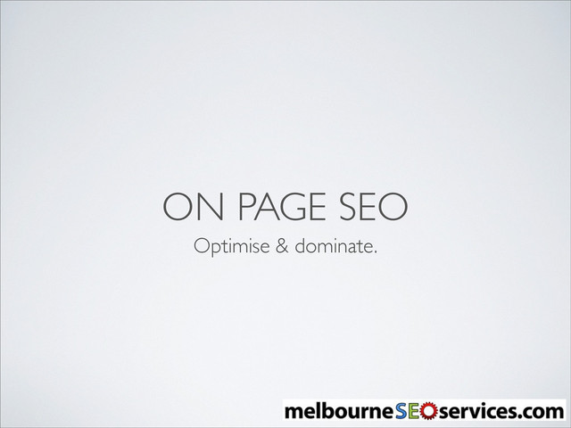 This presentation will guide you in optimising your website's web pages. This will teach you on how to dominate search engine results by having good original content in your webpages. When you give Google what it wants, it will reward your pages with good rankings.