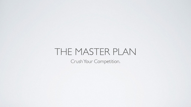 In this speaker deck, David Jenyns will give you the master plan in crushing your competition. He shares his experiences on how he built his business and dominate his industry.