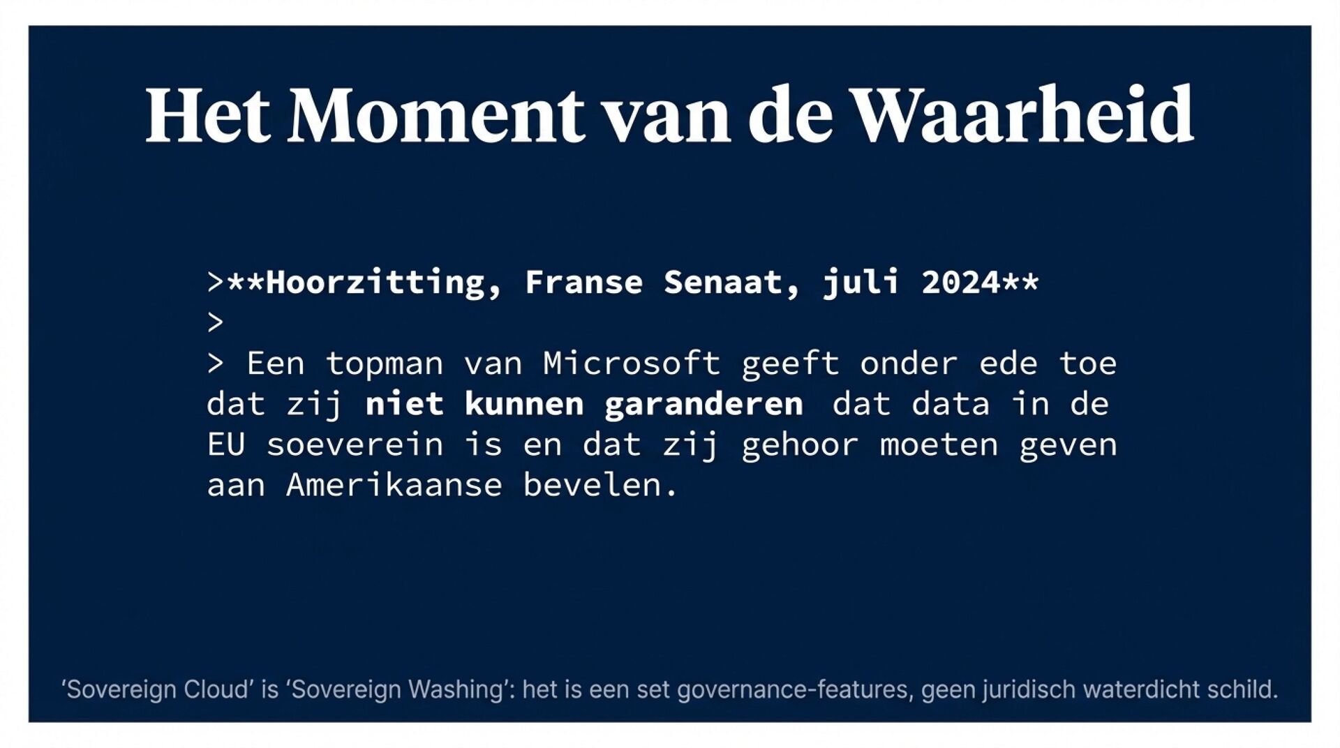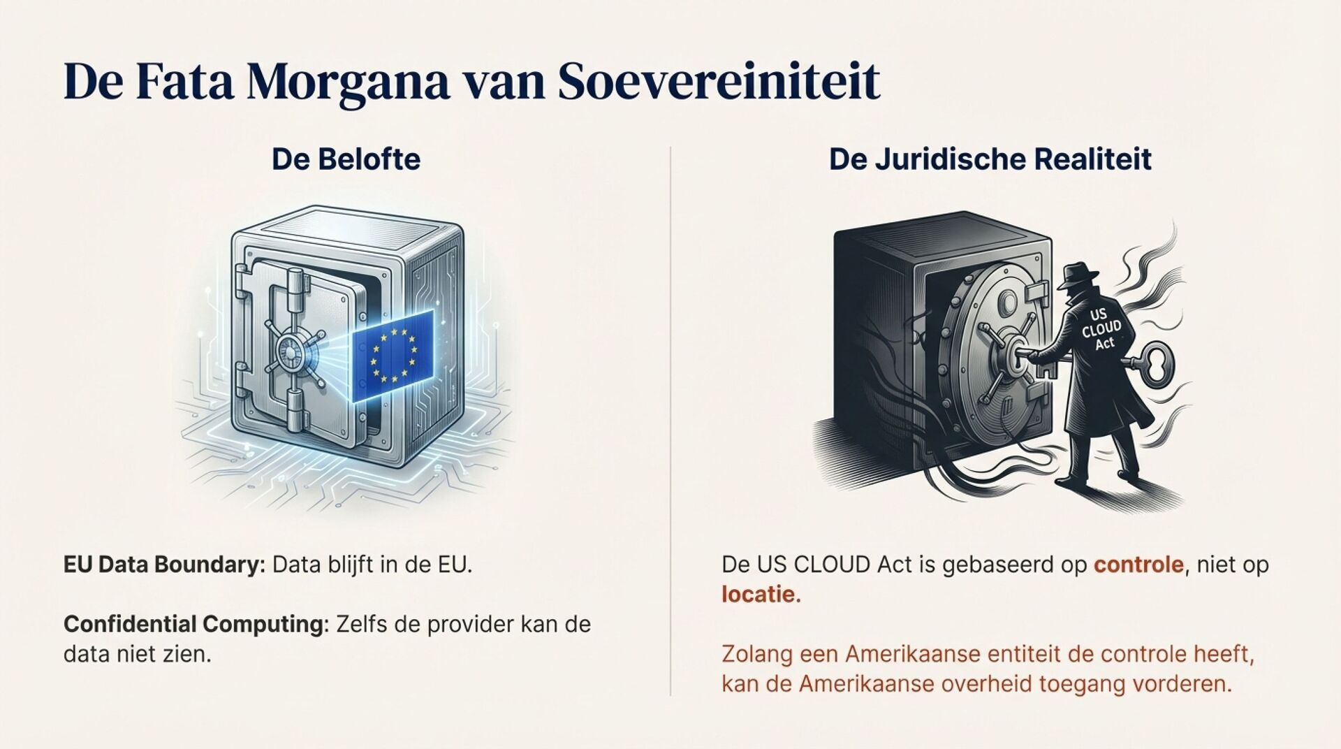 Soevereiniteit blijft intussen dubbelzinnig. Microsoft bouwt EU Data Boundary en “sovereignty features” zoals Data Guardian, en Confidential Computing kan technisch risico mitigeren. Echter, dit verandert de juridische realiteit niet volledig, Amerikaanse jurisdictie kan via CLOUD Act alsnog relevant blijven, zoals ook publiek is besproken rond verklaringen onder ede in Frankrijk.