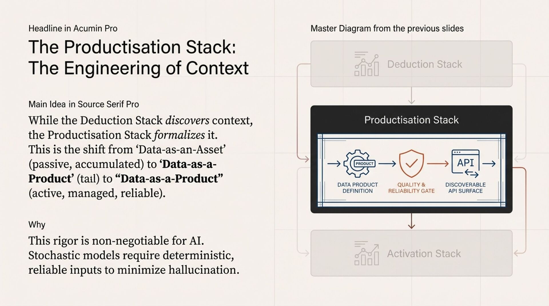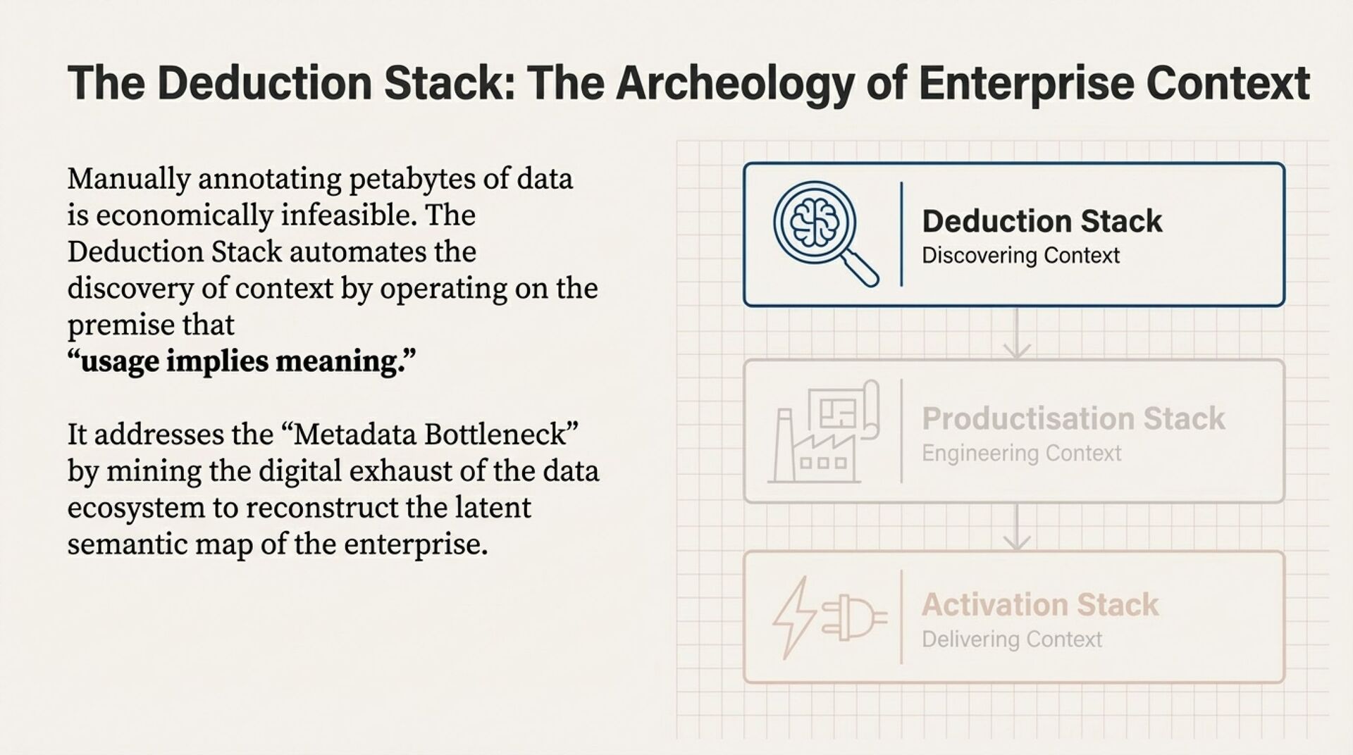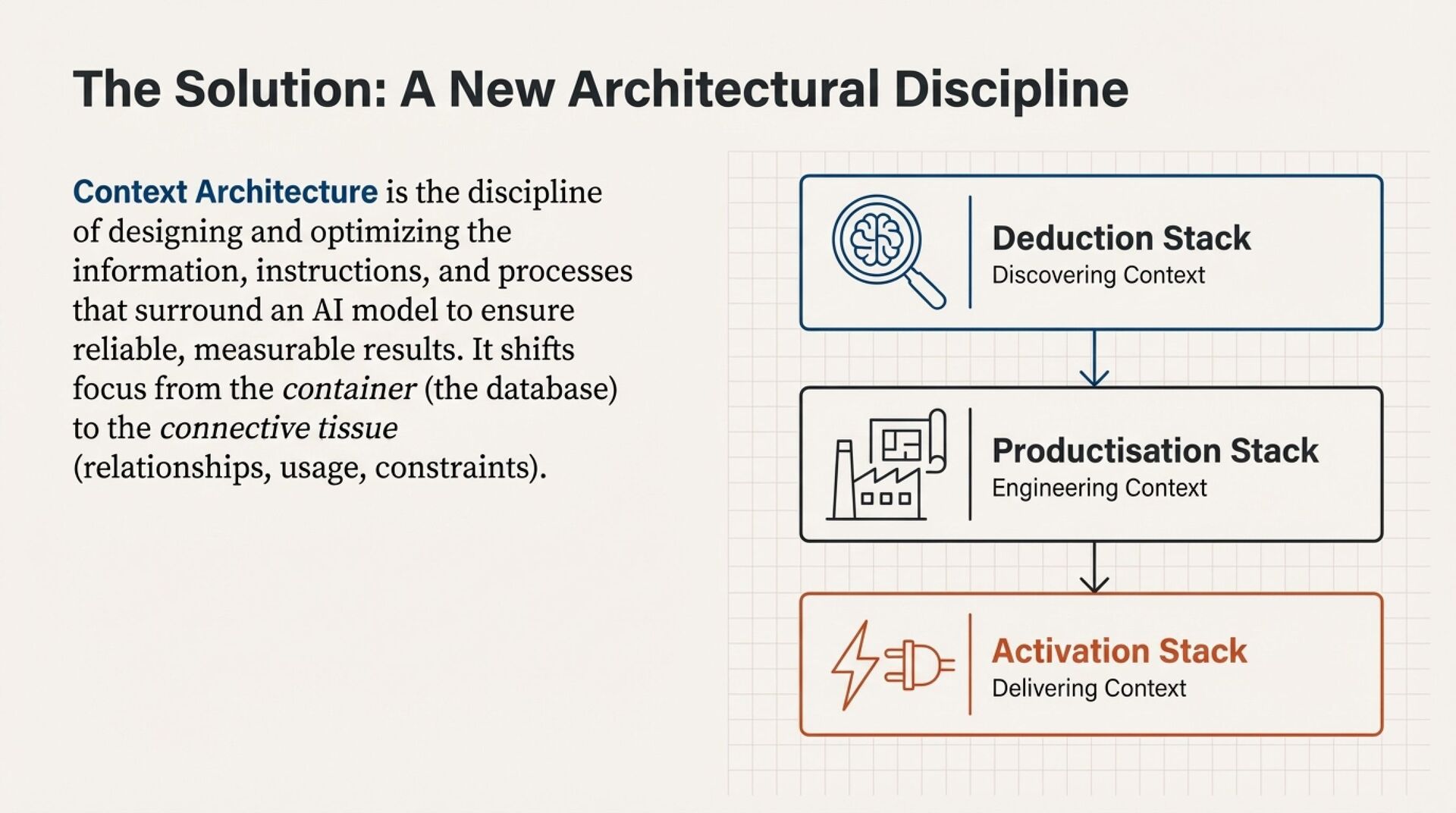 This article introduces Context Architecture as a structural evolution from storage-first to meaning-first. The core model is Deduction, Productisation, Activation.