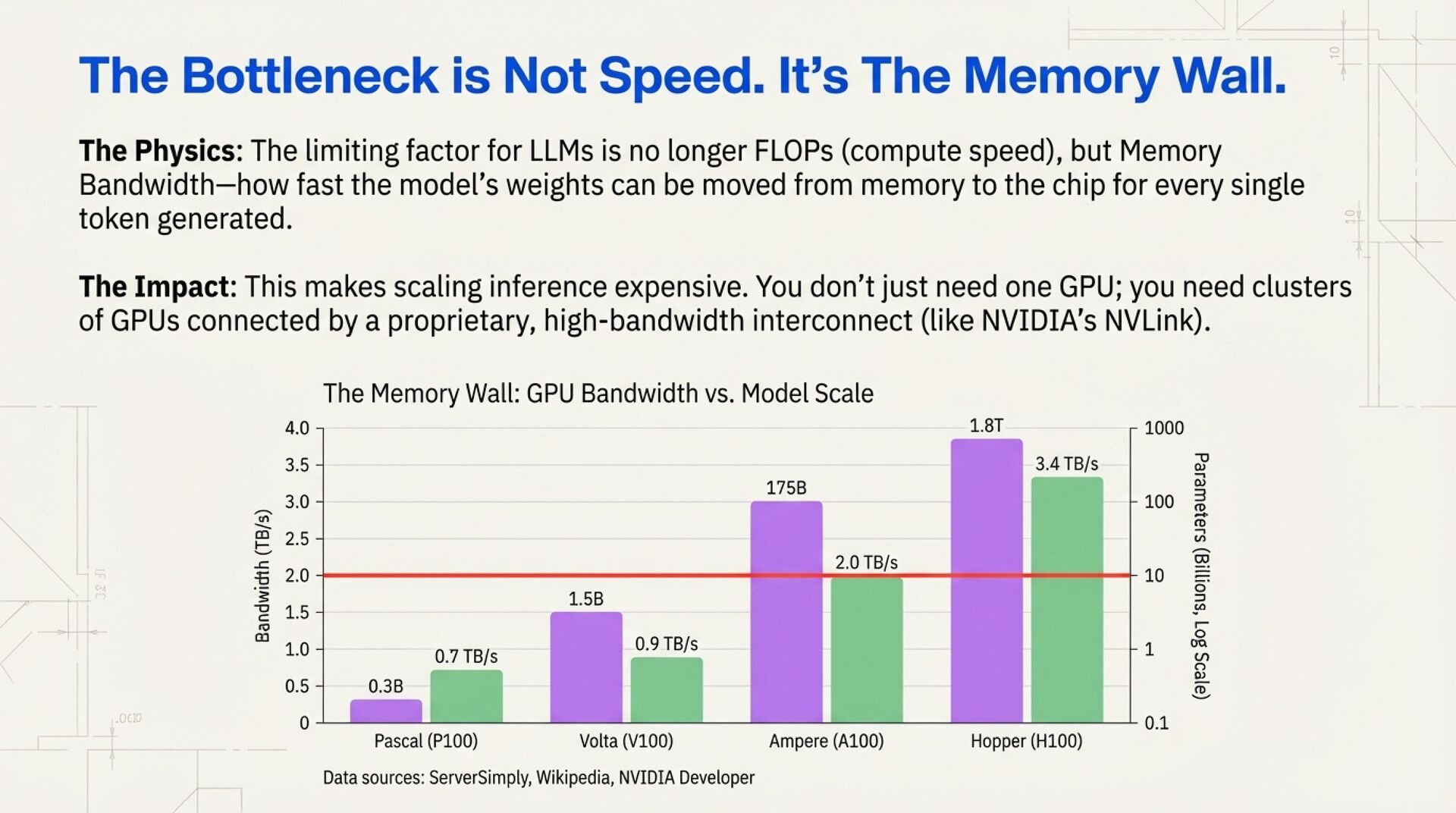 The engineering reality of 2025 is dominated by inference economics. Reasoning models increase runtime tokens dramatically and shift bottlenecks toward VRAM and memory bandwidth. Bandwidth is king because decoding repeatedly loads weights for each generated token. Sovereign AI therefore requires more than buying GPUs, it demands interconnect, scheduling, observability, and cost control.