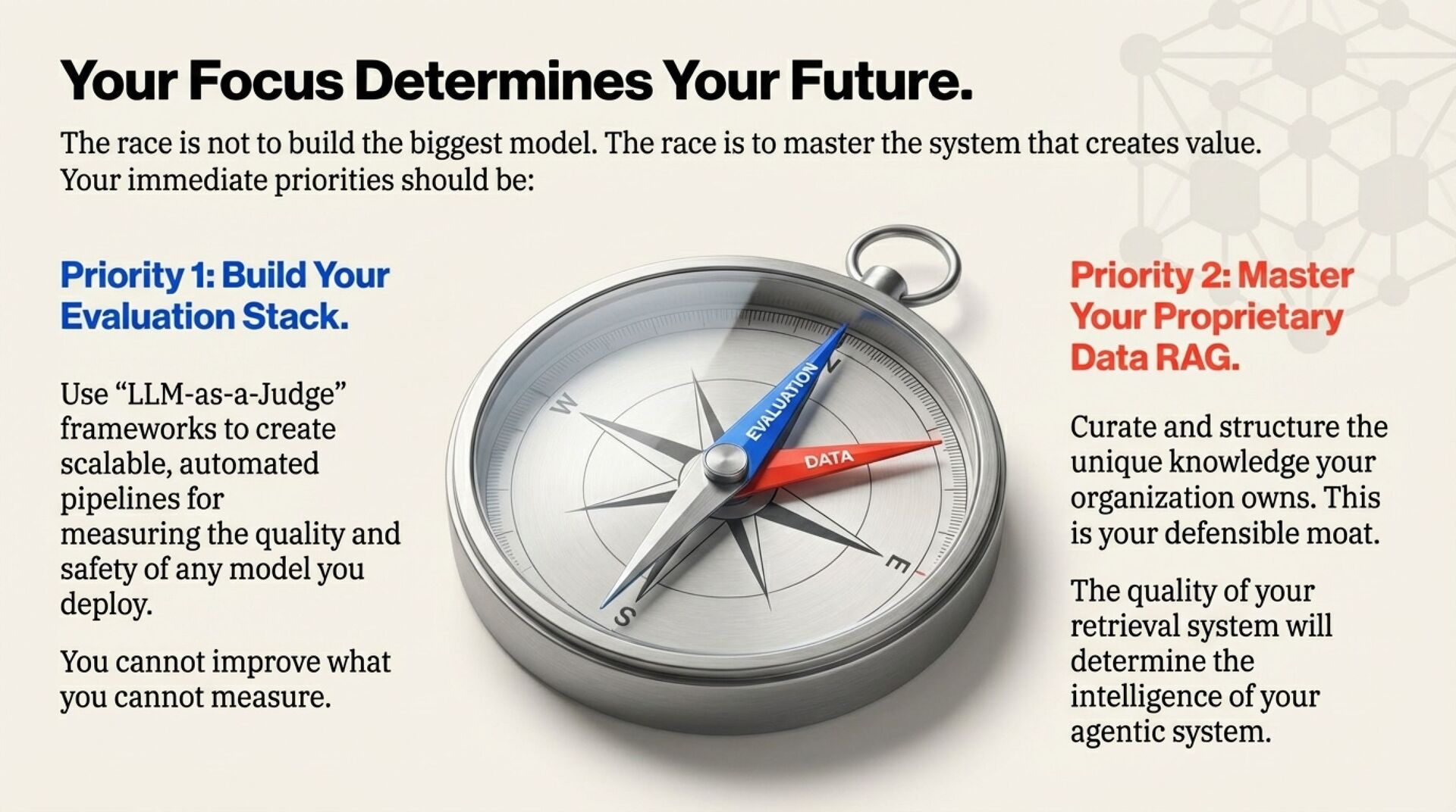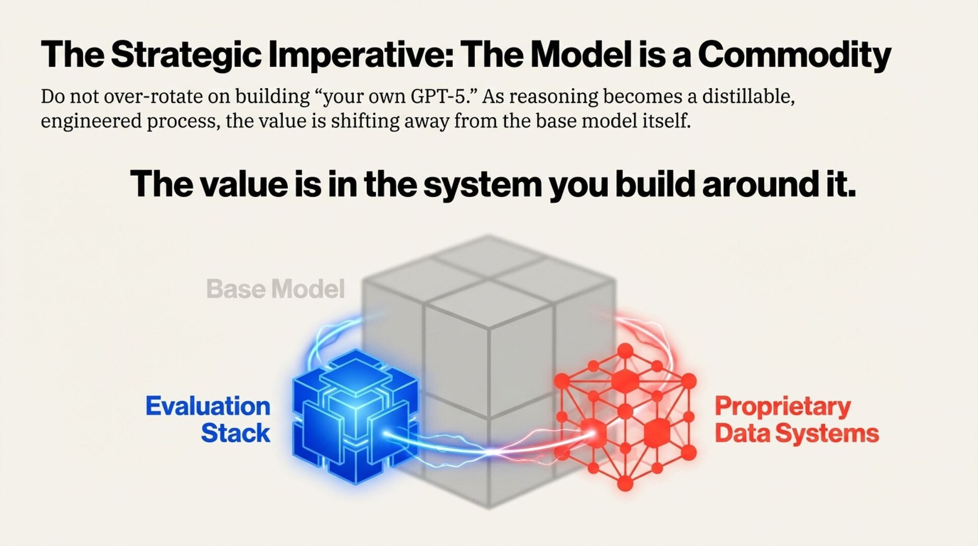 The executive takeaway is sharp. Do not over-invest in building “your own GPT-5.” Treat base models as commodities. Win through evaluation stacks, proprietary data curation, secure RAG, measurable quality, and enforceable policy controls.