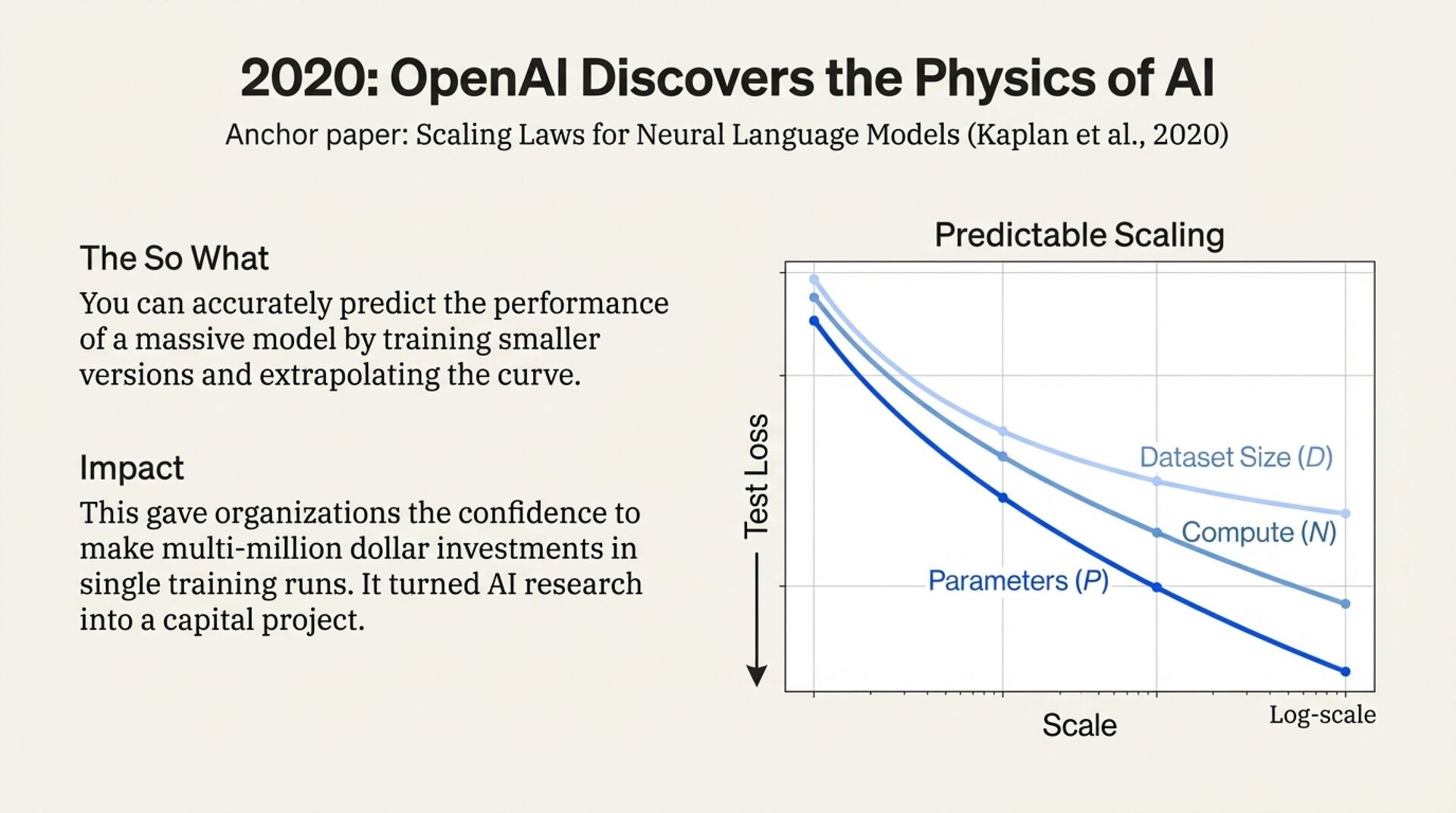 • Scaling laws and GPT-3, predictable scaling turns training into an engineering capital project, prompting replaces widespread fine-tuning.