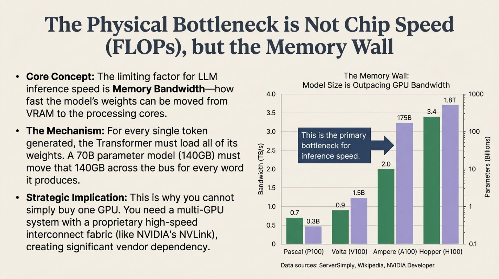 The engineering reality of 2025 is dominated by inference economics. Reasoning models increase runtime tokens dramatically and shift bottlenecks toward VRAM and memory bandwidth. Bandwidth is king because decoding repeatedly loads weights for each generated token. Sovereign AI therefore requires more than buying GPUs, it demands interconnect, scheduling, observability, and cost control.