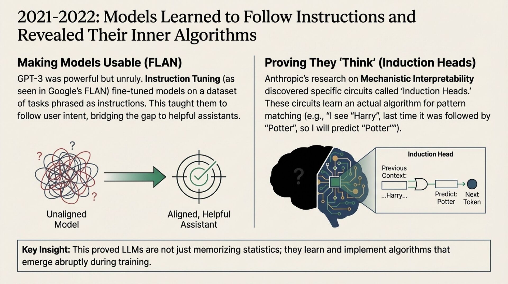 • Instruction tuning, models become usable assistants by learning intent, not pattern completion.