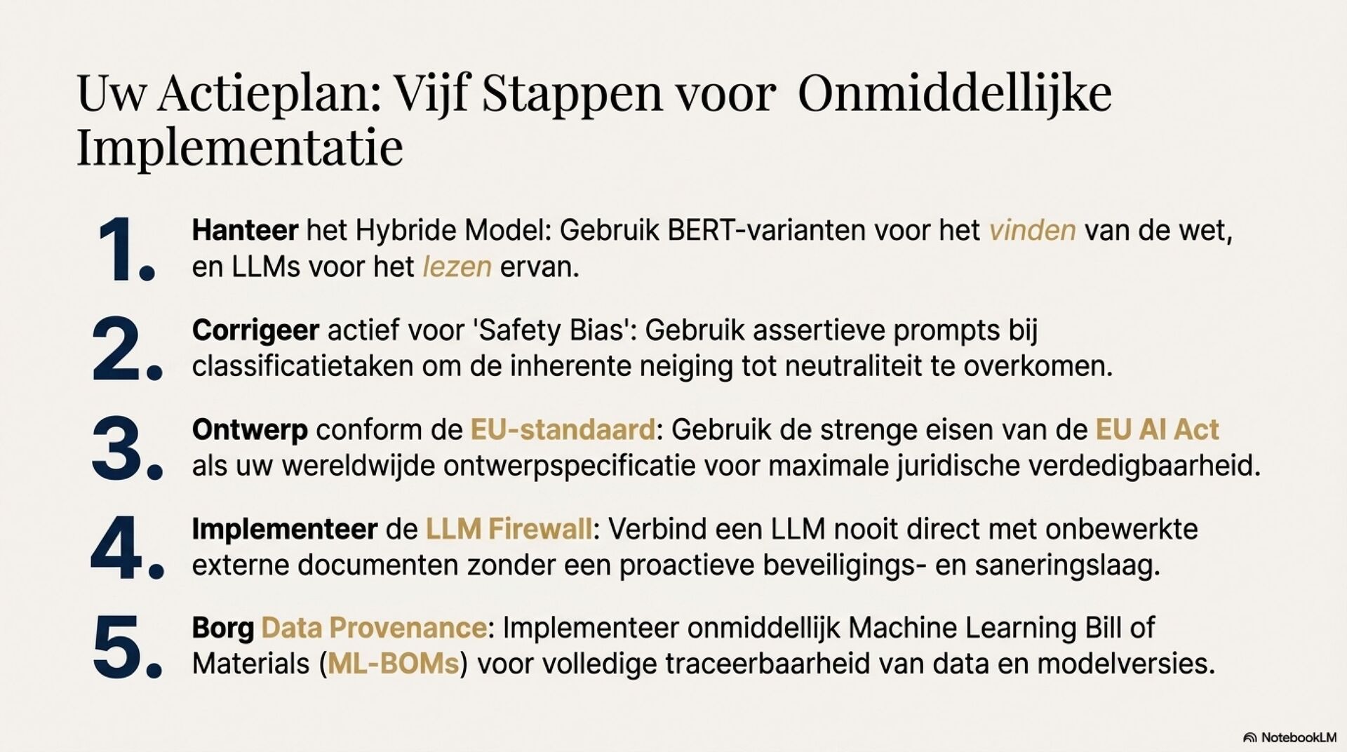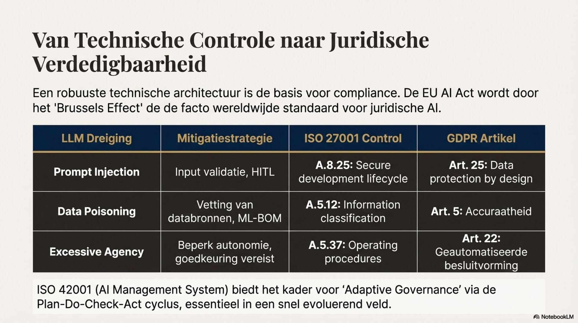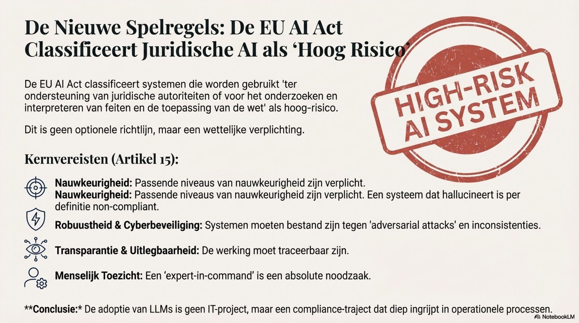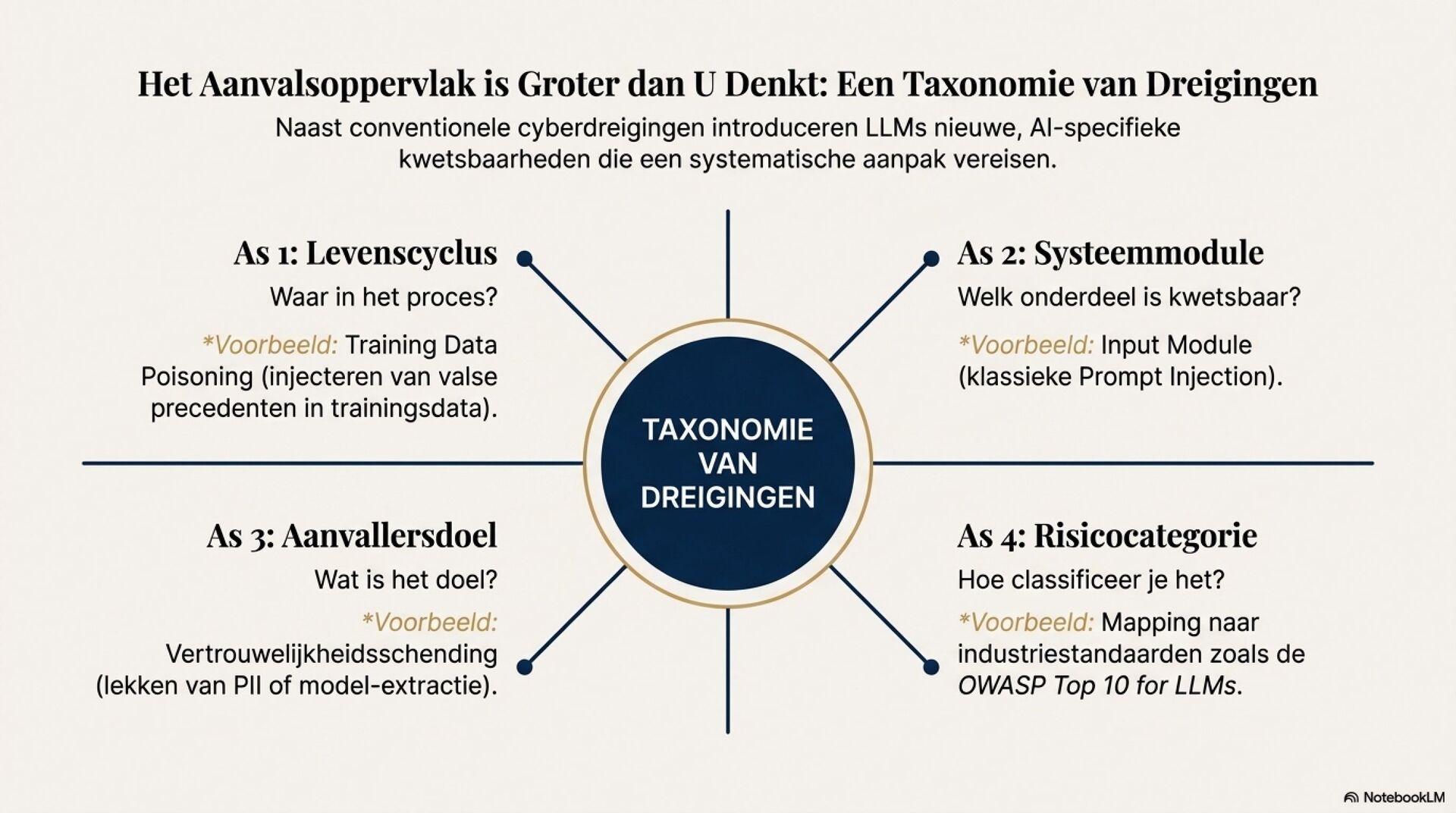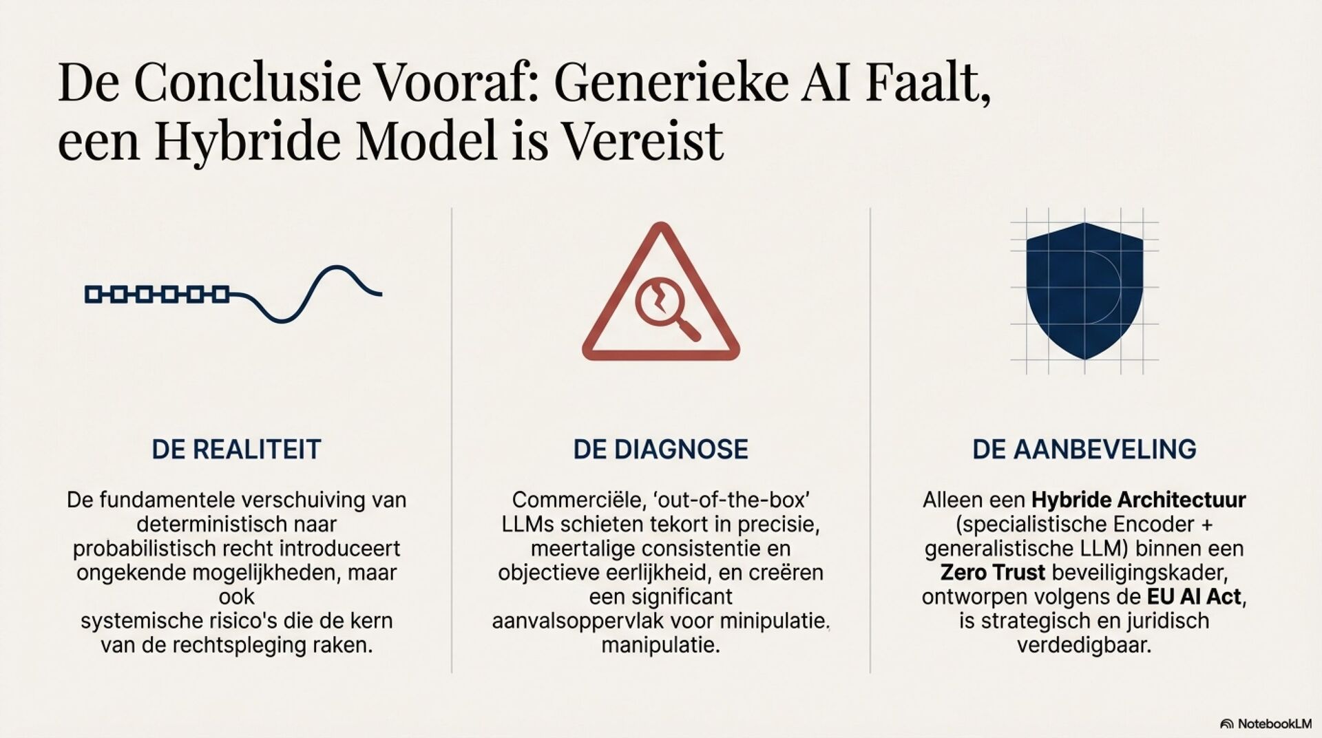 Je ziet een fundamentele shift in juridische AI, van deterministische zoek en regelsystemen naar probabilistische, semantische LLM-redenering. Dat opent sterke use cases zoals samenvatten van jurisprudentie, extraheren van rechtsbeginselen, contractanalyse en meertalige legal NLP. Tegelijkertijd introduceert het nieuwe foutmodi die je in het recht niet mag negeren, hallucinaties, inconsistentie, language drift, prompt injection, data poisoning en supply chain model drift.