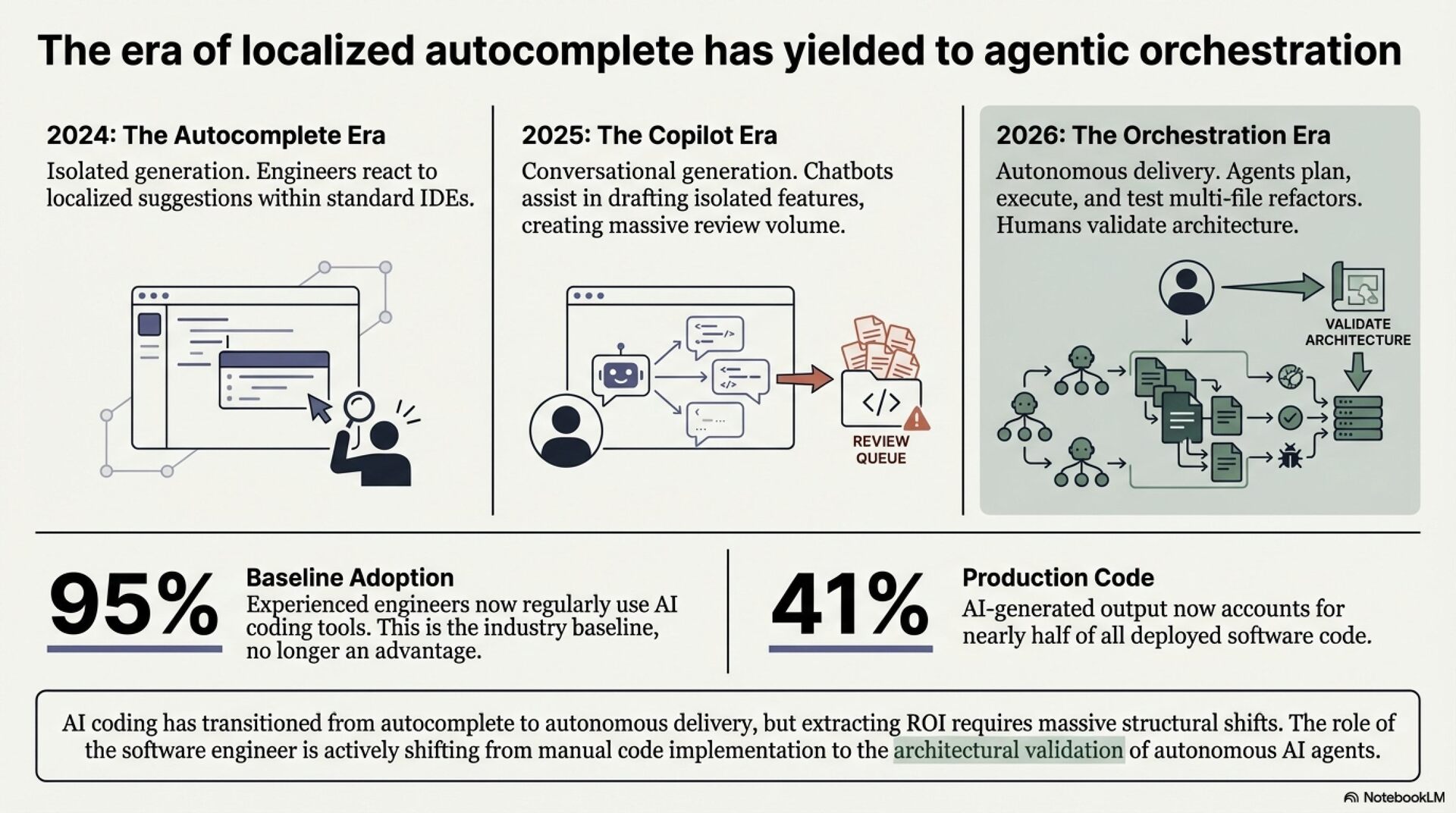 Three structural transformations define the current landscape. First, development is shifting from tool-assisted to agent-native paradigms. Claude Code captured the number one market position within eight months of its May 2025 launch, with agents autonomously handling entire pull request workflows. Second, polyglot AI stacks are replacing single-model reliance. 70% of AI tool users employ two to four distinct tools weekly. Third, verification has become the dominant bottleneck. The Faros report found AI-generated code results in 91% longer PR review times. Code generation is no longer the constraint. Code review is.
