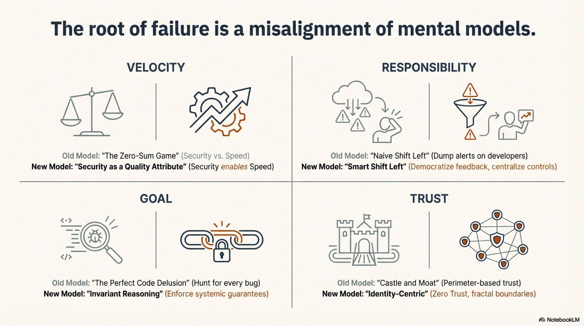 To understand the history of security engineering, we must first understand the evolution of the core ideas, or "mental models," that shaped each era. The friction often seen between security and development teams is rarely about technology; it is a clash of outdated and modern ways of thinking.