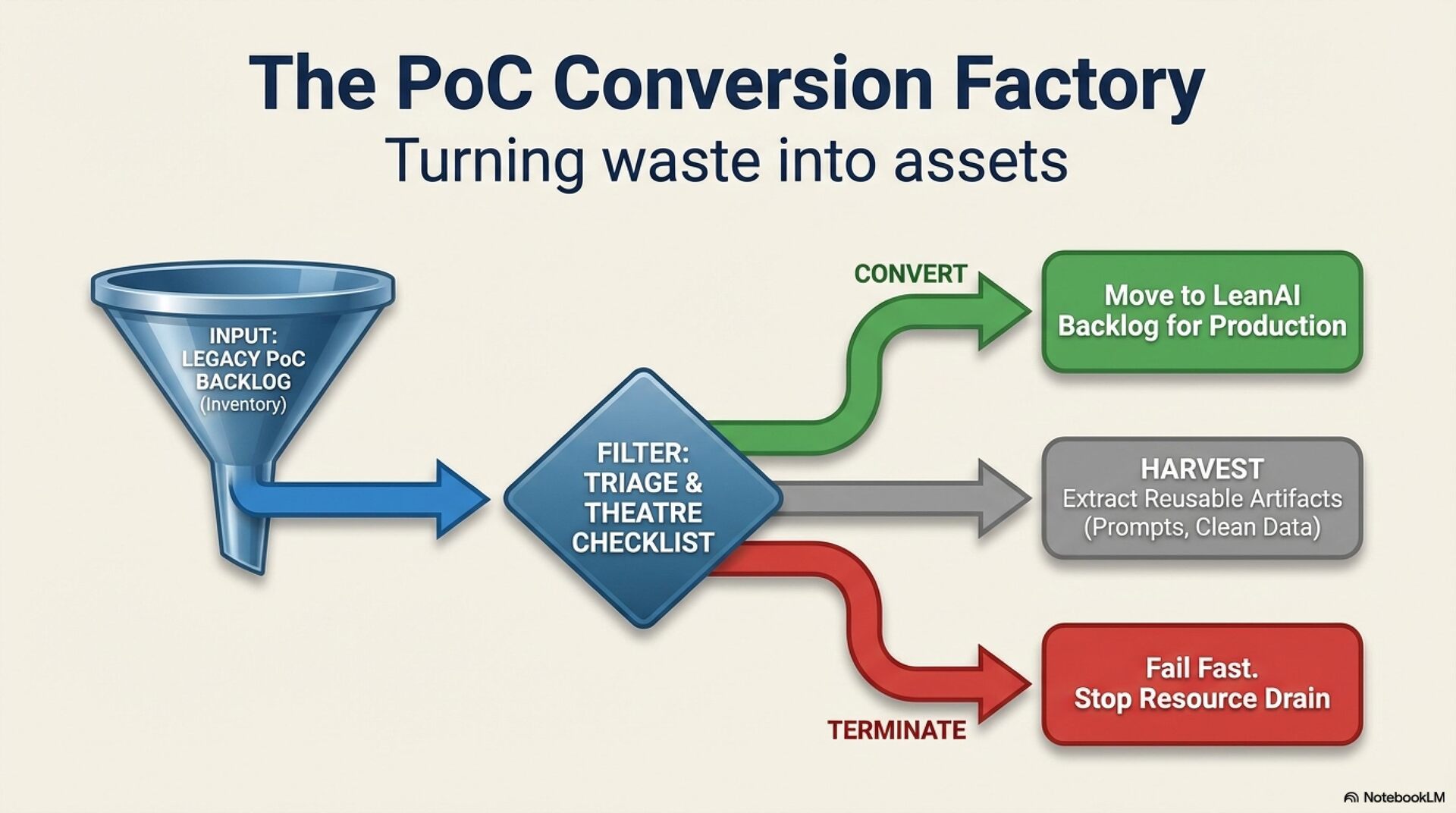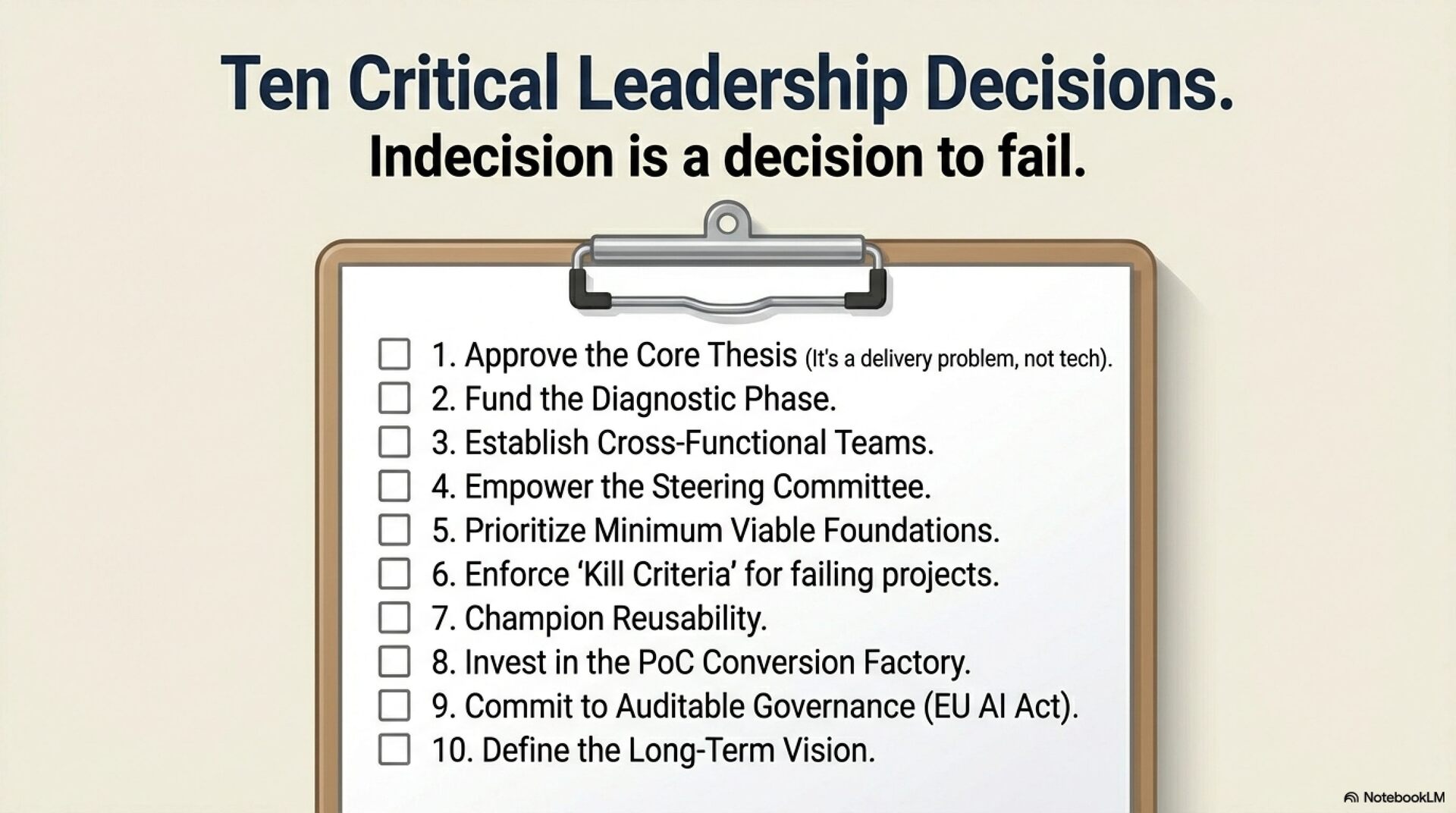 The industry is currently mired in the "PoC Trap" and "AI Theatre"—deployments optimized for executive optics rather than business outcomes. This results in wasted time and talent, organizational fatigue, and a compounding "data quality debt." To reverse this, leadership must adopt the 70-20-10 resource allocation rule: 70% of effort must be dedicated to business process transformation, 20% to technology integration, and only 10% to algorithms.