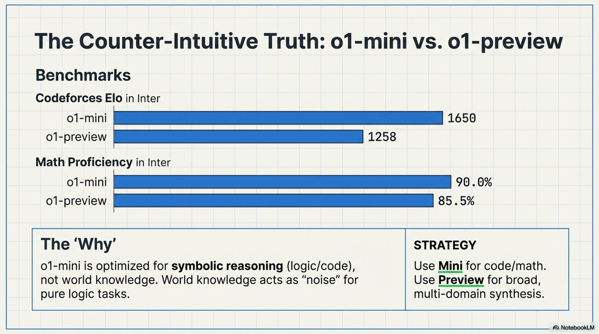 For code, debugging, and math heavy tasks, o1-mini is often the better default. Use larger variants when you need broader domain knowledge and synthesis.