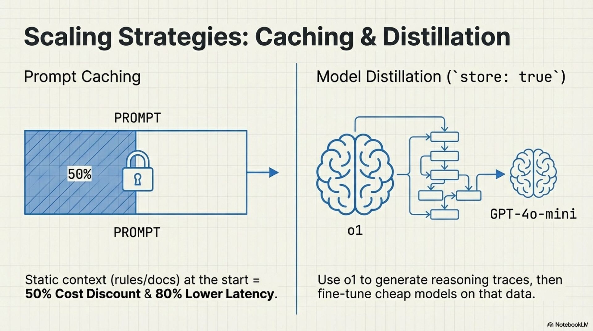 • Store high quality outputs and distill into cheaper models for recurring tasks