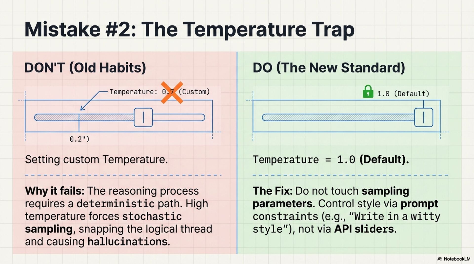 Many o1 workflows only support the default temperature. Tooling that silently sets temperature can cause API errors or degraded reasoning.